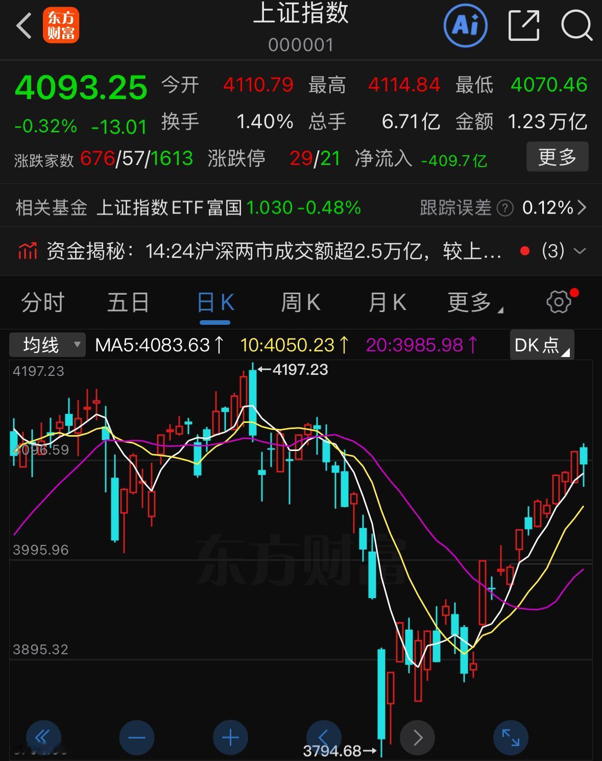 首先看今天盘面,早盘高开后出现一波明显回落,盘中引发不少恐慌盘出逃,成交量也随之放大,但下午指数逐步止跌企稳,沪深两市指数都重新收回五日均线,现阶段指数依旧依托五日均线保持趋势上行,目前位置刚好处于前期筹码密集平台区,出现震荡分歧很正常,整体上行趋势并没有被破坏。