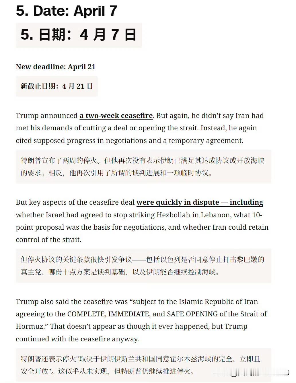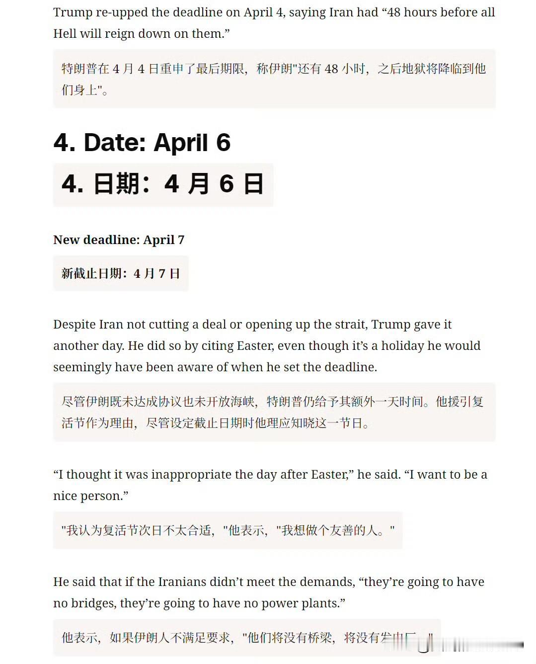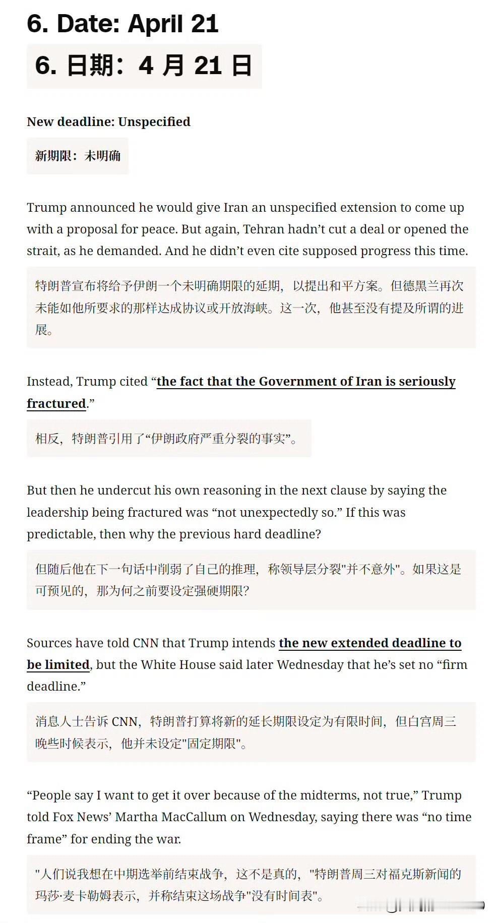 然后 CNN 逐一列举了特朗普的六次最后通牒。