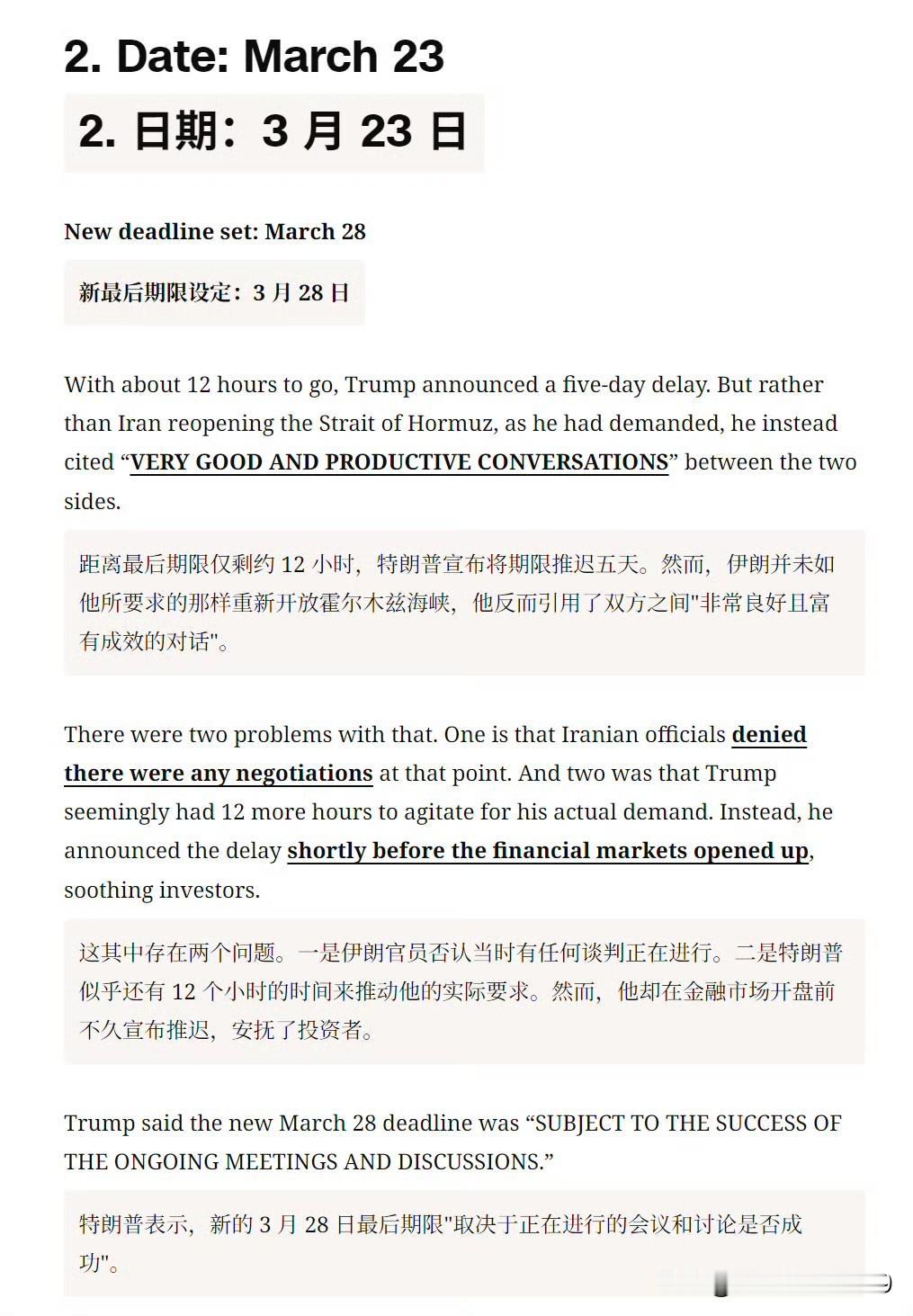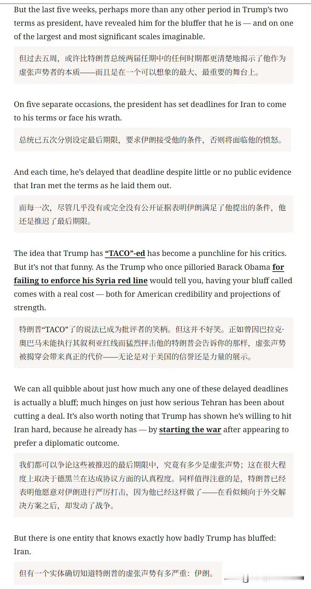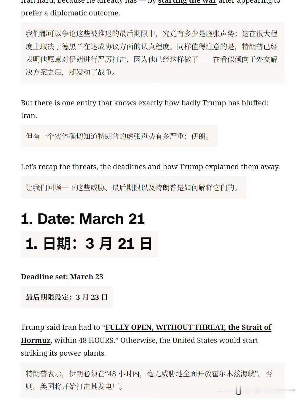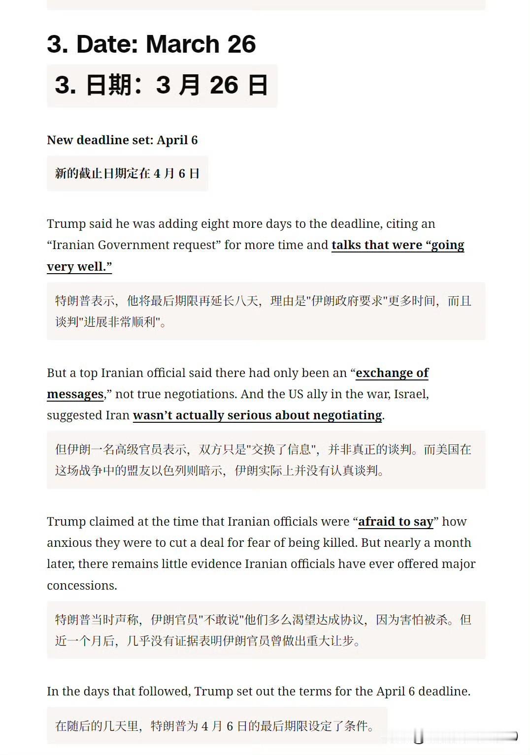 然后 CNN 逐一列举了特朗普的六次最后通牒。
