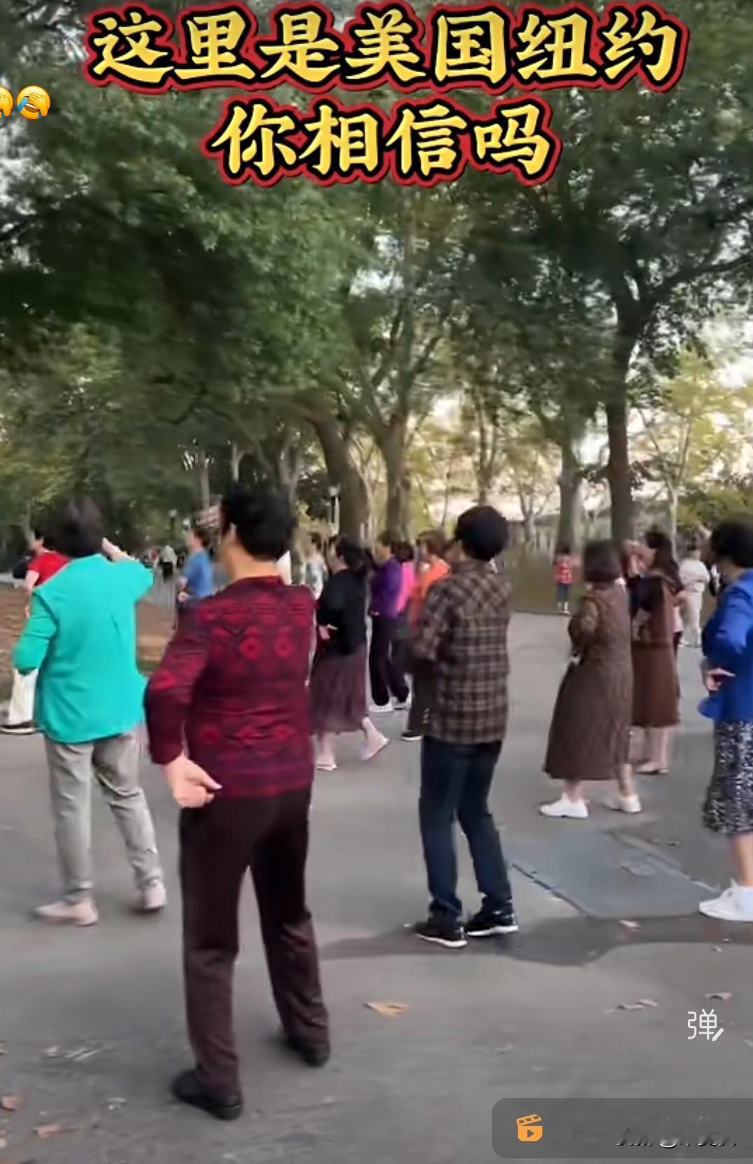 这是身在美国的网友吴先生拍的视频,一群华人大叔大妈在纽约跳广场舞的活动场景。镜头一扫过去,全是中国人。
