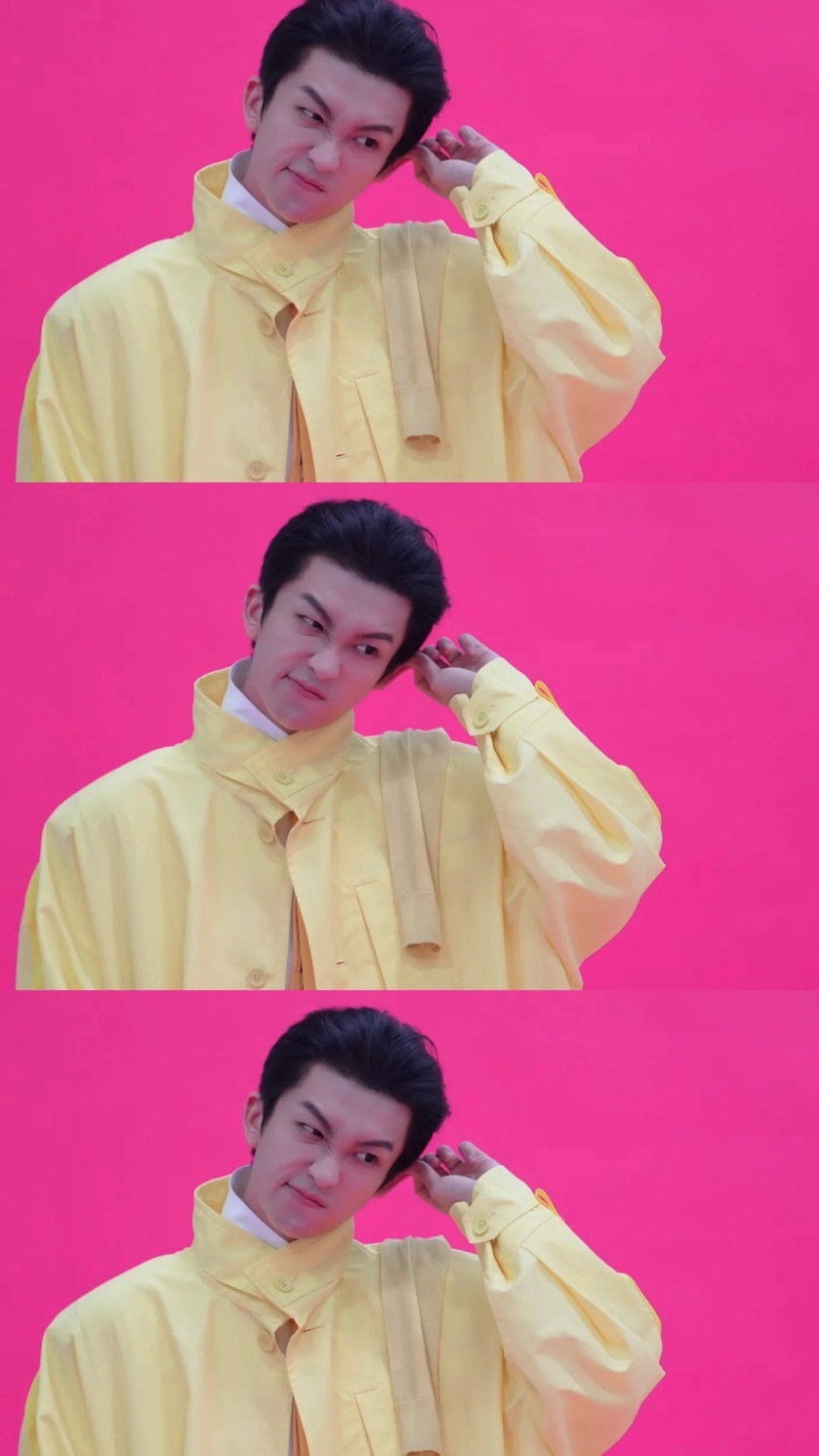 将头发梳成大人模样的小黄总哈哈哈哈!也是蛮帅的