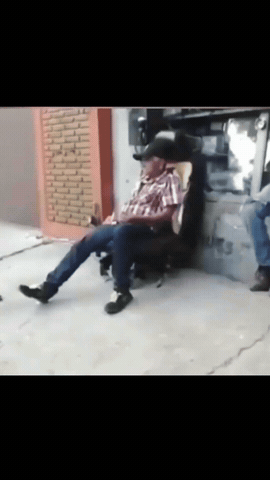 真是惊呆路人, 大爷翘着二郎腿,坐在椅子上,好一自在舒服的模样,没想到,下一秒,