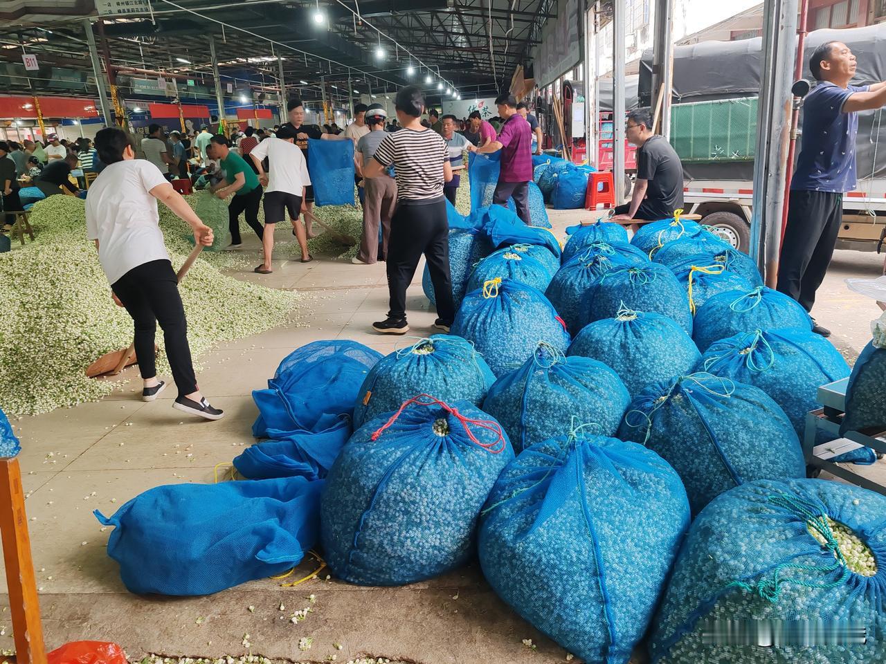 今天由于天气原因,茉莉花价格出现了大幅下跌,由原来昨天的8块钱/斤,跌到了今天的4块钱/斤,每次收购商,在天气下雨的时候都会尽量的压价,把价格开的低低的,照这样下去,估计今年的茉莉花行情不怎么好,可能连药水钱,化肥钱都挣不回来。