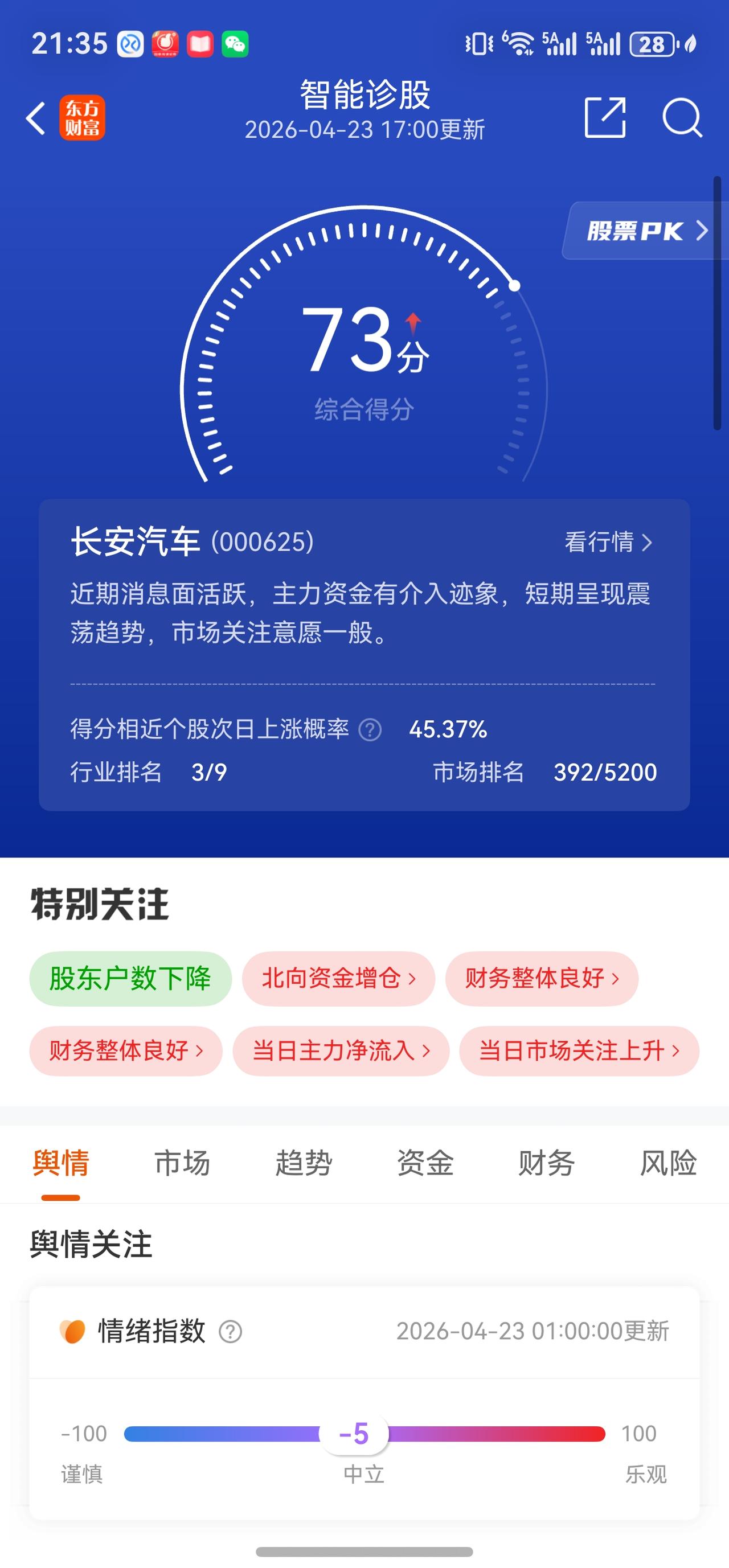 长安汽车A股今日走势情况及展望