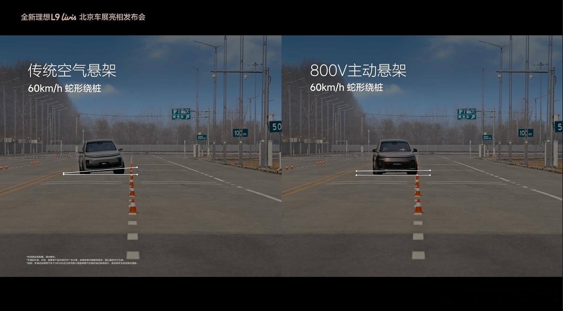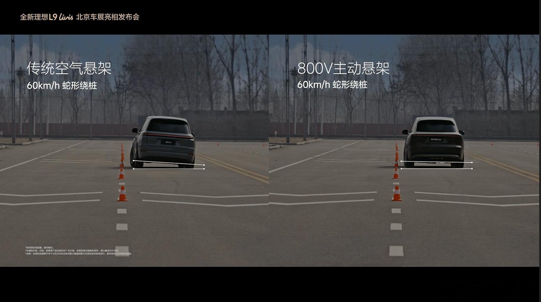 官方自己来了一个理想 L9 Livis 和老款理想 L9 绕桩对比,可以看到搭载全主动悬架的理想 L9 Livis 的表现。