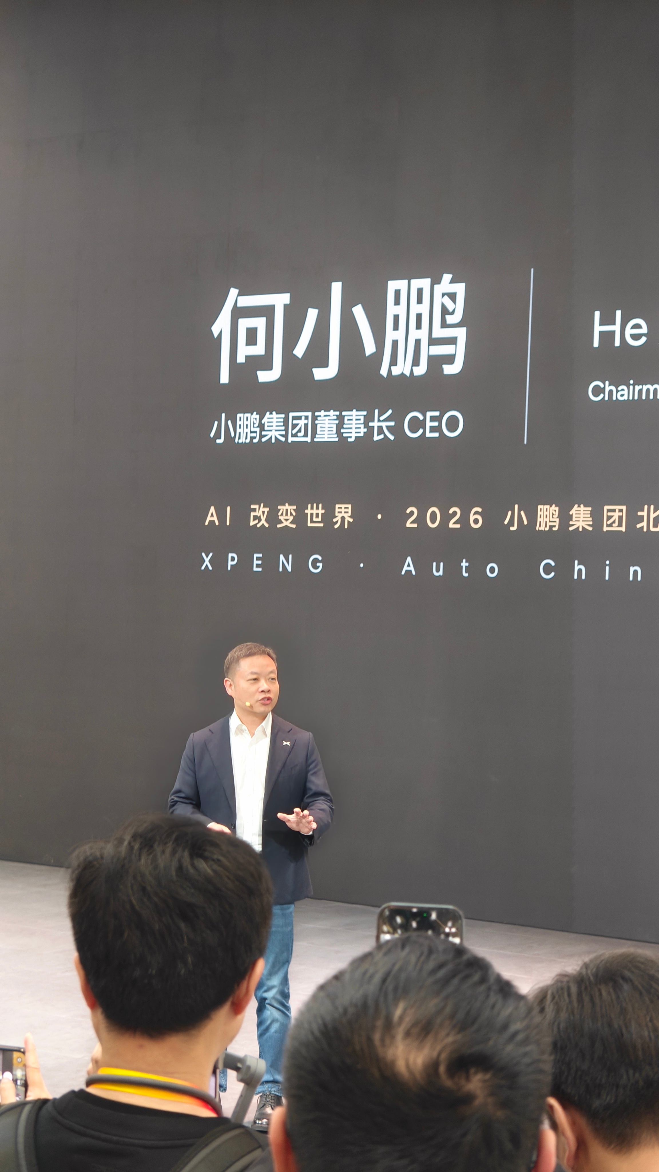 2026年北京车展开幕首日,小鹏集团董事长何小鹏在E2馆小鹏展台正在开发布会。包括新科技旗舰小鹏GX在内的物理 AI 全明星产品阵容将重磅亮相。
