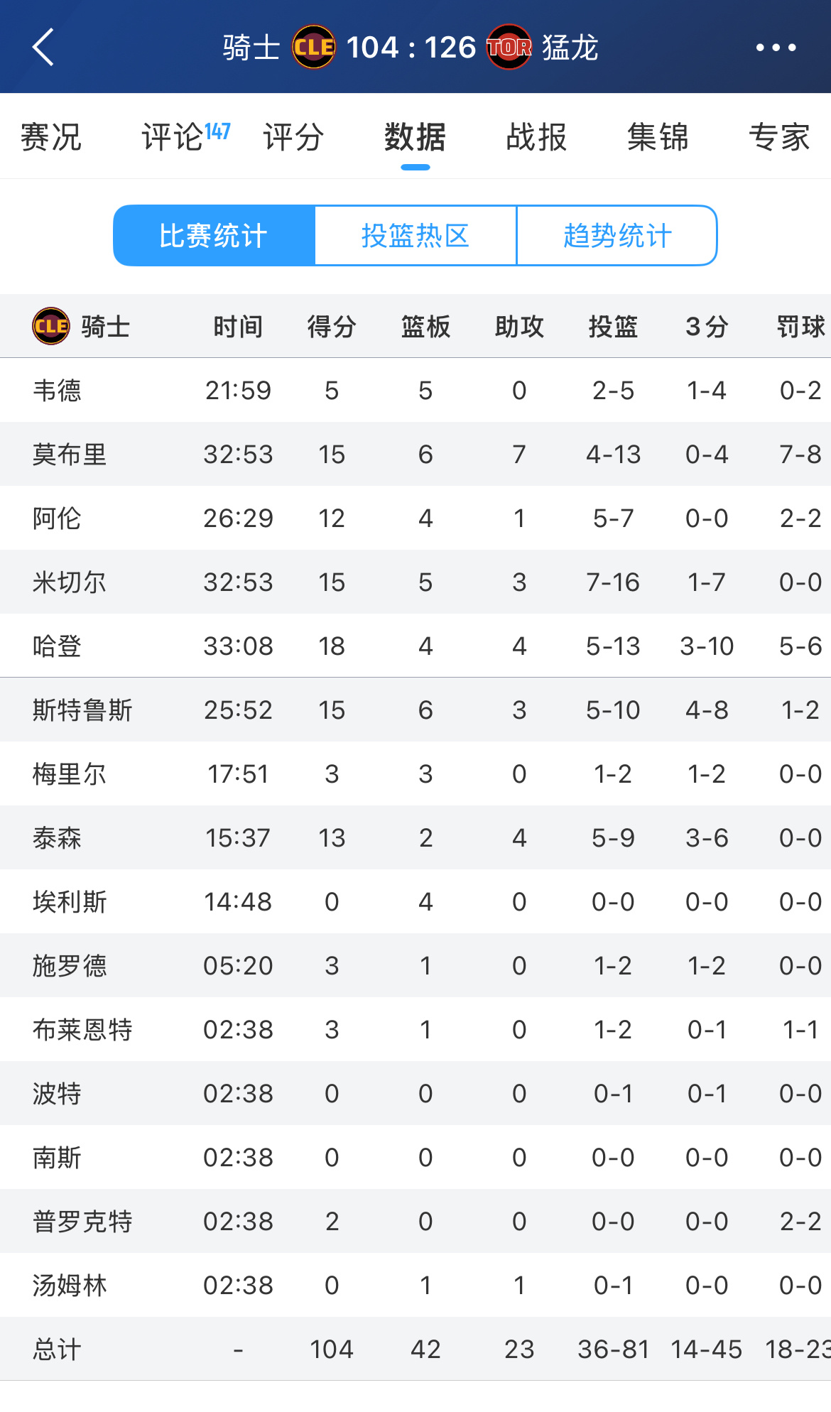 猛龙主场126-104大胜骑士,将大比分追到1-2!