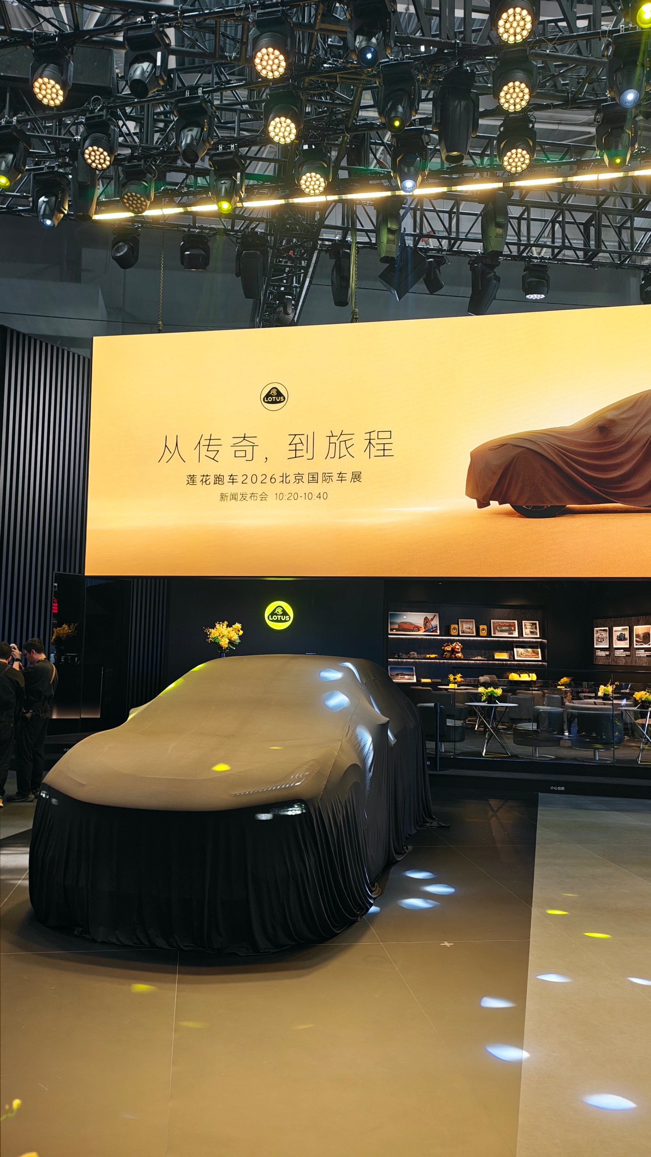 郎朗来到W4馆莲花跑车展台,准备与冯总一起为黑金色的莲花For Me揭幕发布!2026北京车展莲花FM