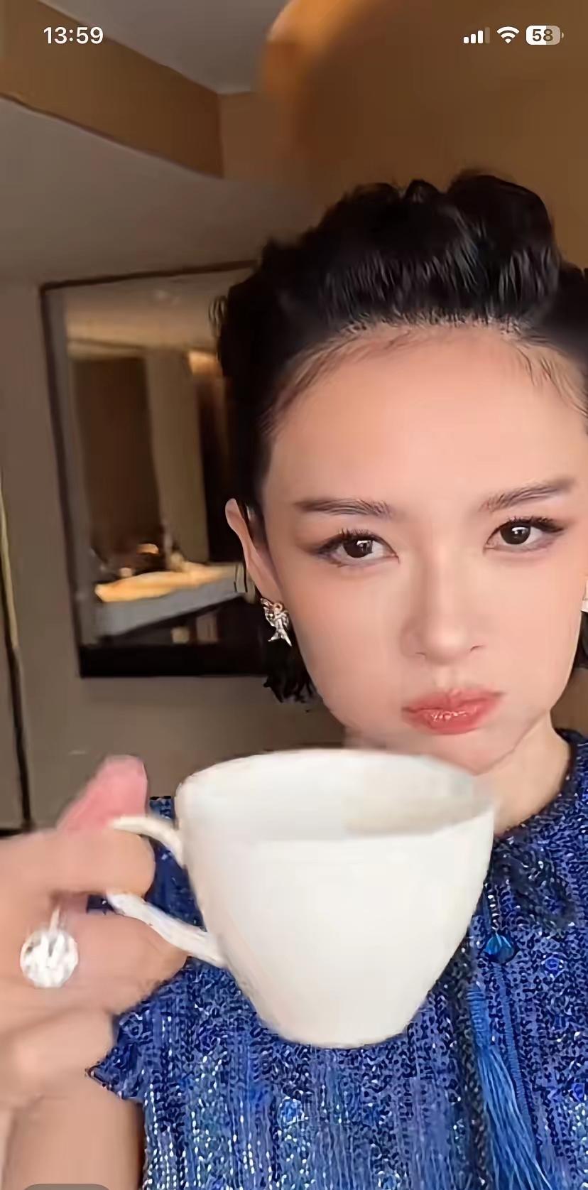 章子怡越来越幼态十足了!对着镜头嘟嘴卖萌,眼睛迷离,端着水杯可爱的面容,反差风拉满