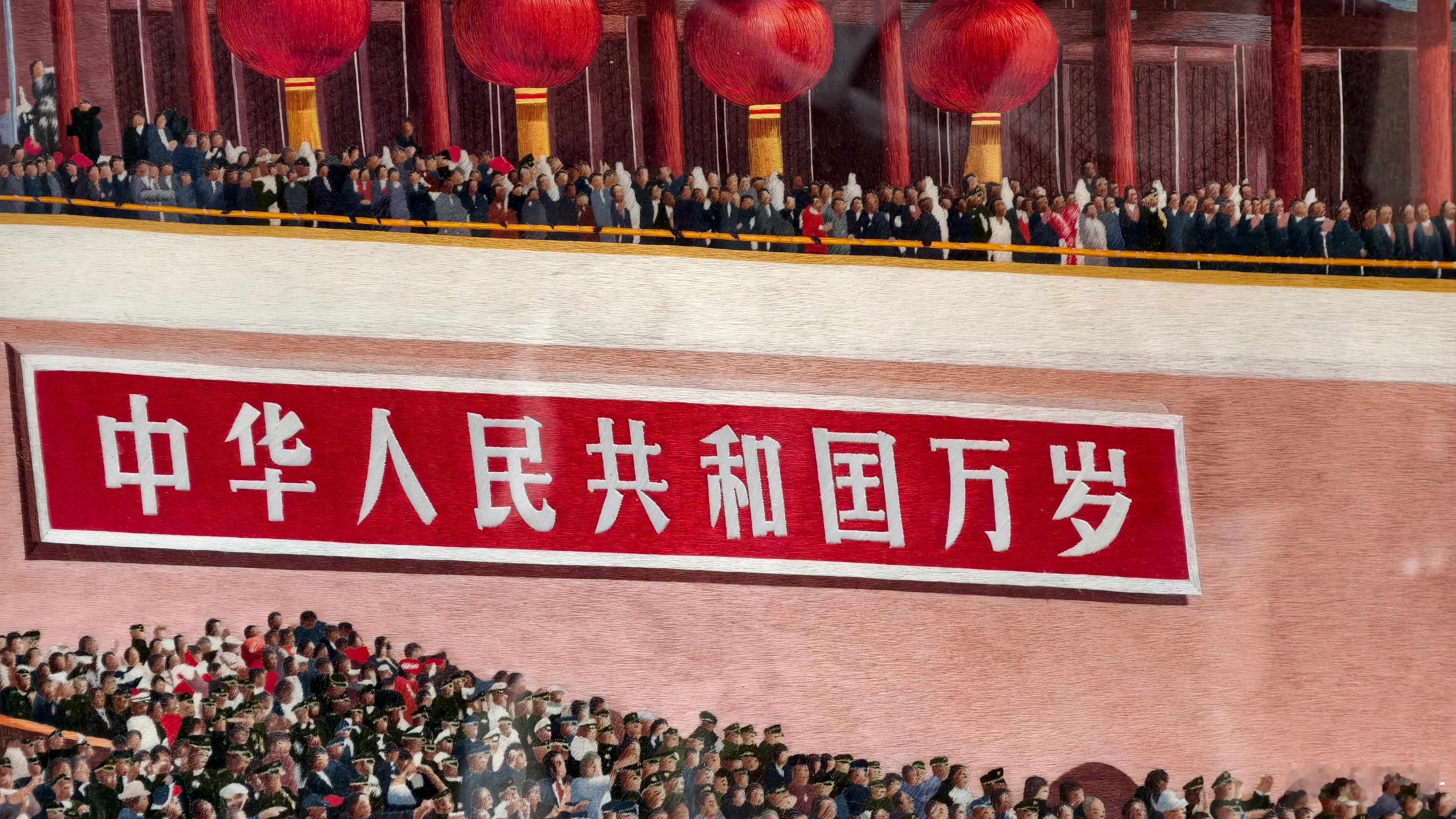 这艘船是目前中国海军唯一一艘单舰完成环球航行的舰,也是人民海军的军事外交担当,其中大有说头的就是舰上的贵宾接待室,里头挂着一幅刺绣,不细看你还以为是画。整幅刺绣的内容是大连舰艇学院方阵在2009年国庆大阅兵时走过天安门接受党和人民的检阅。但这幅画其中埋了一处伏笔……