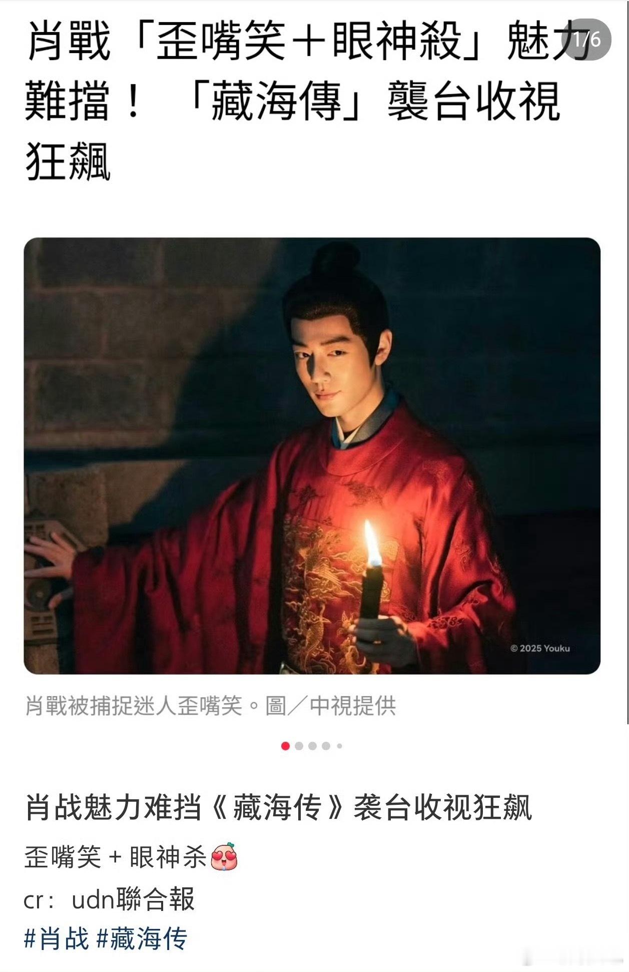 台湾联合报报道:肖战魅力难挡,《藏海传》收视狂飙,收视总人口73.8万人,是当今