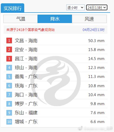 从08-14时降水量看,内蒙古东北部和黑龙江西北部出现雨雪混杂的情况。海南、广东、福建南部等地出现明显降雨。海南定安72.7毫米、文昌64.2毫米,至少都已经是暴雨级别。而且海南广东等地出现了短时强降雨,12-13时文昌单小时50.3毫米、11-12时定安单小时44.7毫米、降雨如瓢泼。