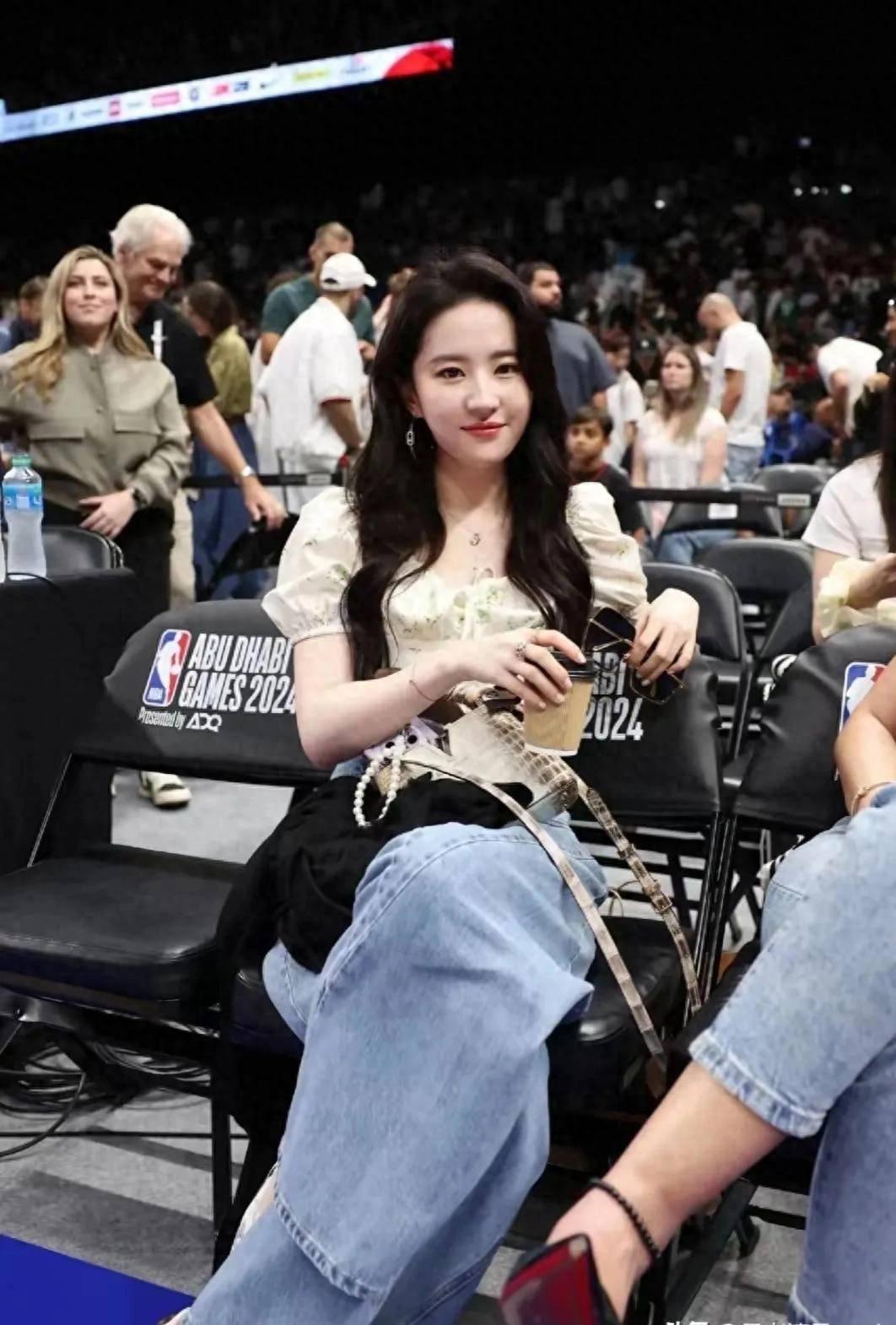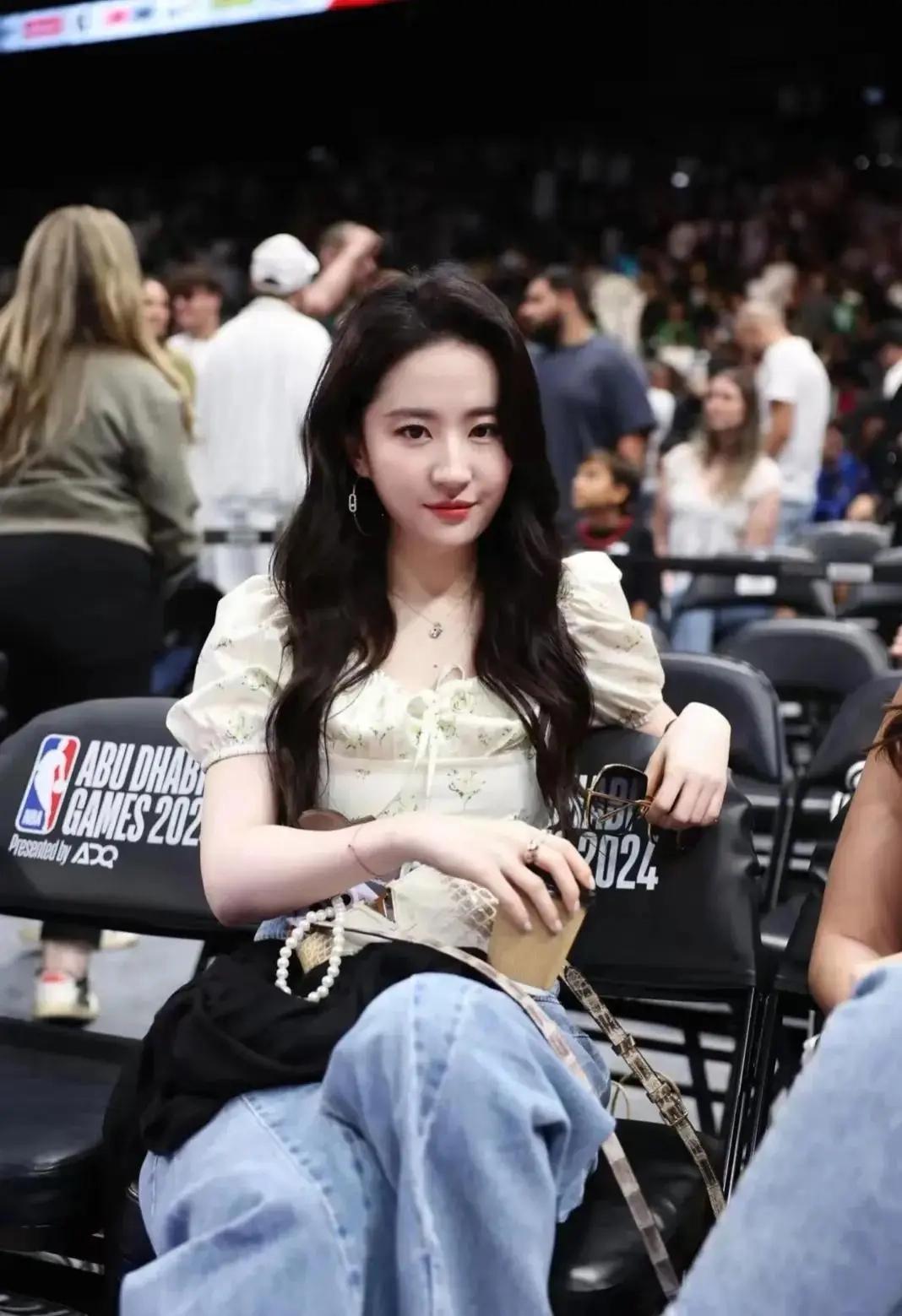 这是刘亦菲坐在NBA赛场上,观看比赛时的画面。 2024年10月,刘亦菲受邀出席NBA阿布扎比站季前赛,她身穿雪纺上衣和牛仔裤,脚穿运动鞋,充满活力的样子。 当时,坐在后排的美女和刘亦菲说话,她侧头倾听的样子,真的好美啊。刘亦菲