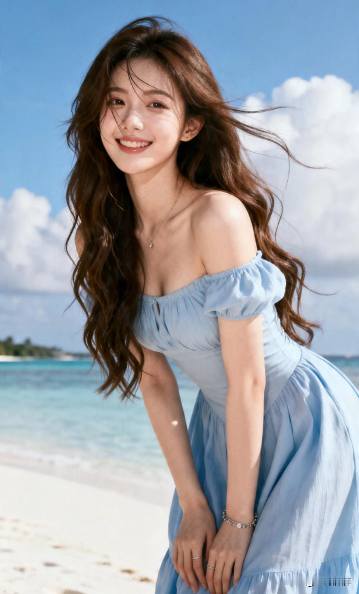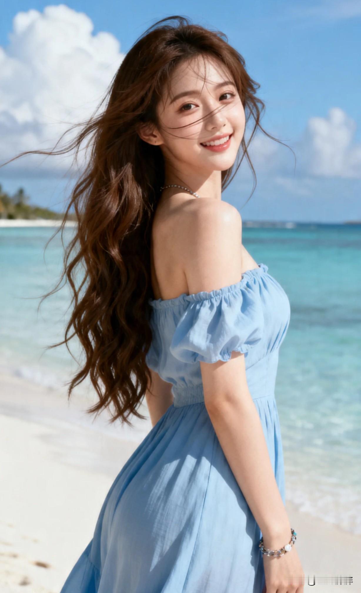 夏日海滩的甜美笑容,浅蓝色连衣裙随风飘扬,海浪轻拍脚边,阳光洒满全身。这样的穿搭,大家喜欢吗?