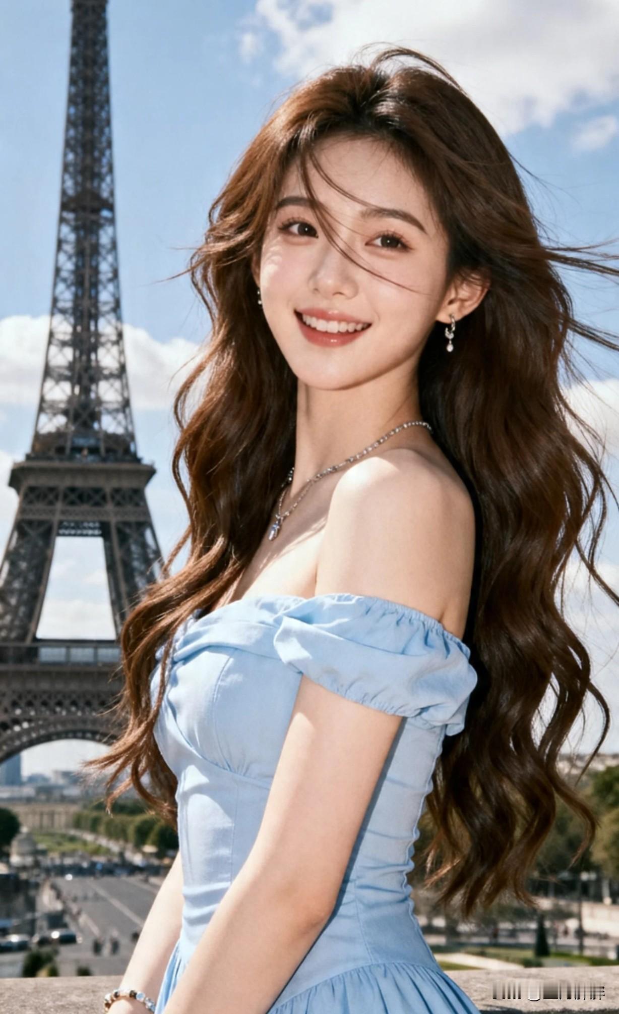 在埃菲尔铁塔前,笑靥如花的少女,梦幻巴黎之旅,好羡慕她呀,可以到处旅游
