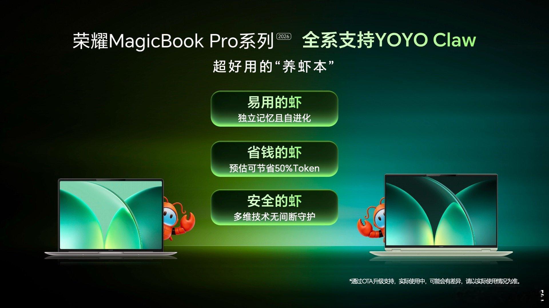 荣耀YOYO Claw四月升级 | 系统级AI用着太省心荣耀龙虾宇宙四月更新直接把实用度拉满,这次YOYO Claw连MagicBook Pro系列都全量支持,封测的「YOYO控虾」更是直接打通了跨端能力。所有任务执行都是系统级权限,不需要额外开放第三方APP授权,从根源避免隐私泄露,实打实的安全养虾。还有50+核心技能覆盖9大自动场景,定时推送、跨端联动都能实现,日常繁琐操作直接交给AI跑,效率至少提一倍。