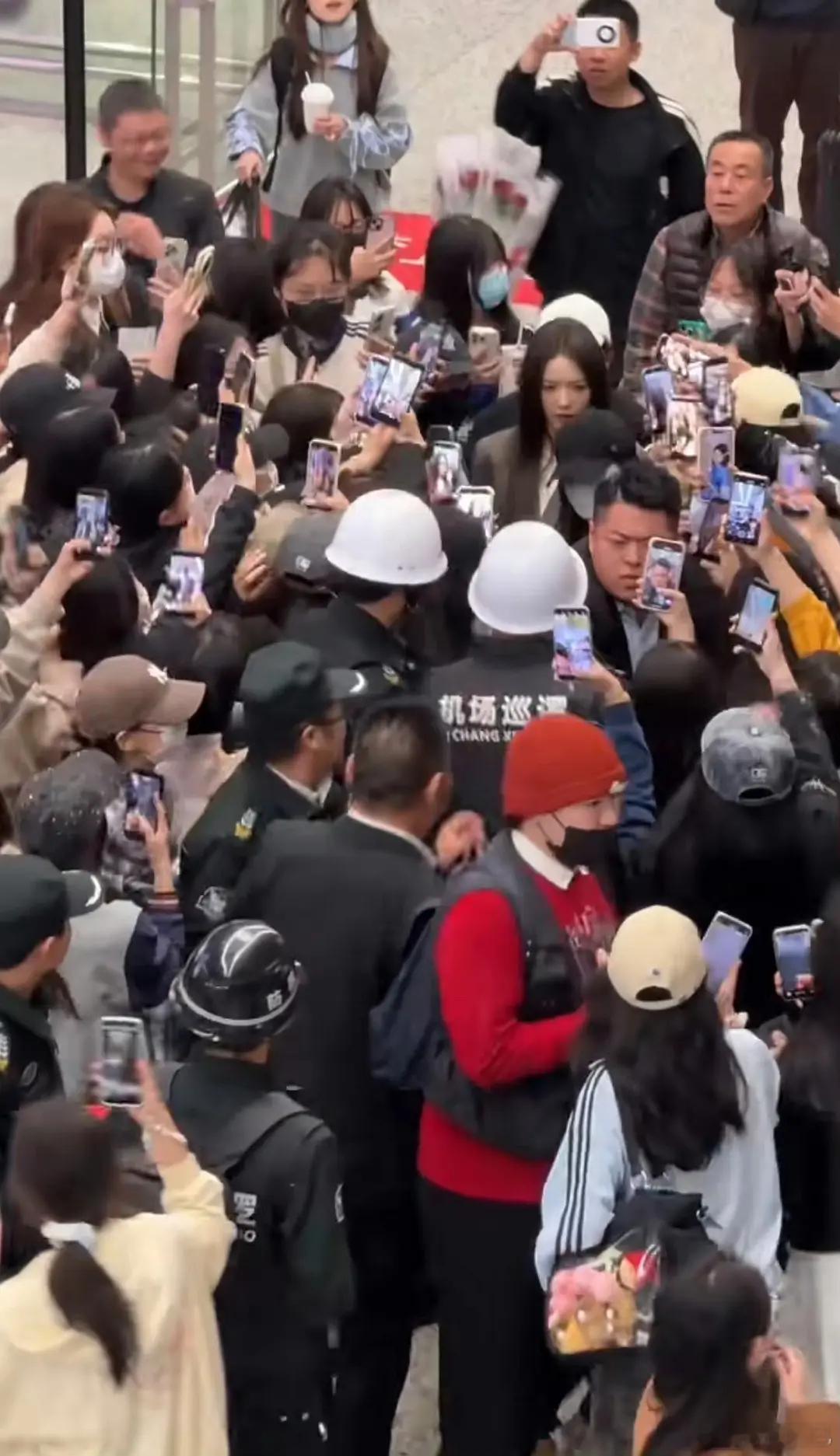 蔡文静被机场dp挤哭了,手机都快怼脸上了