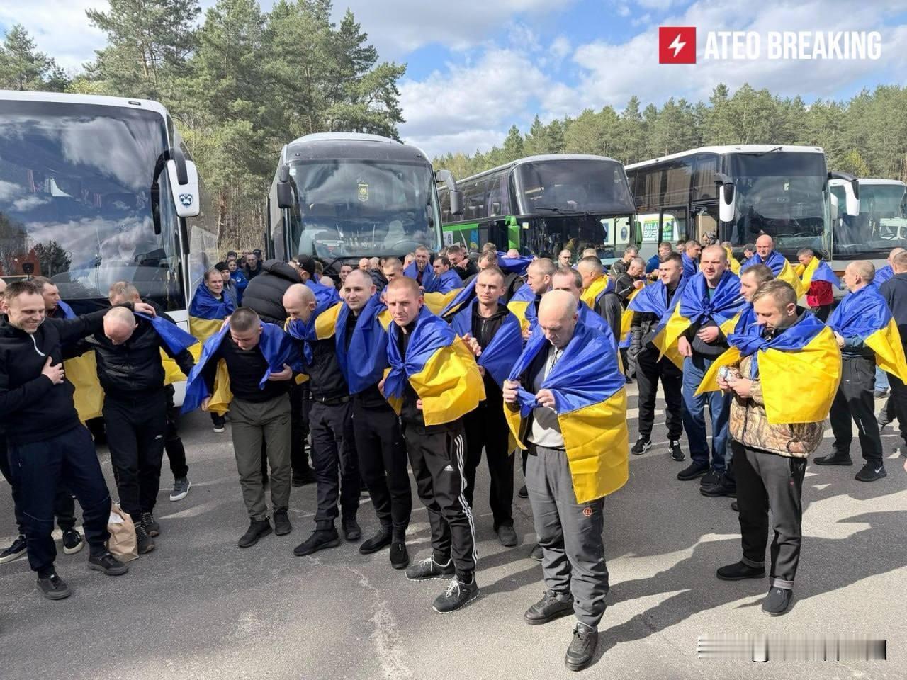 乌克兰总统泽连斯基发布最新一批从俄罗斯战俘营获释的乌军士兵照片。画面中,这些历经长期囚禁的军人几乎全部剃着光头,身披乌克兰国旗,场面令人动容。