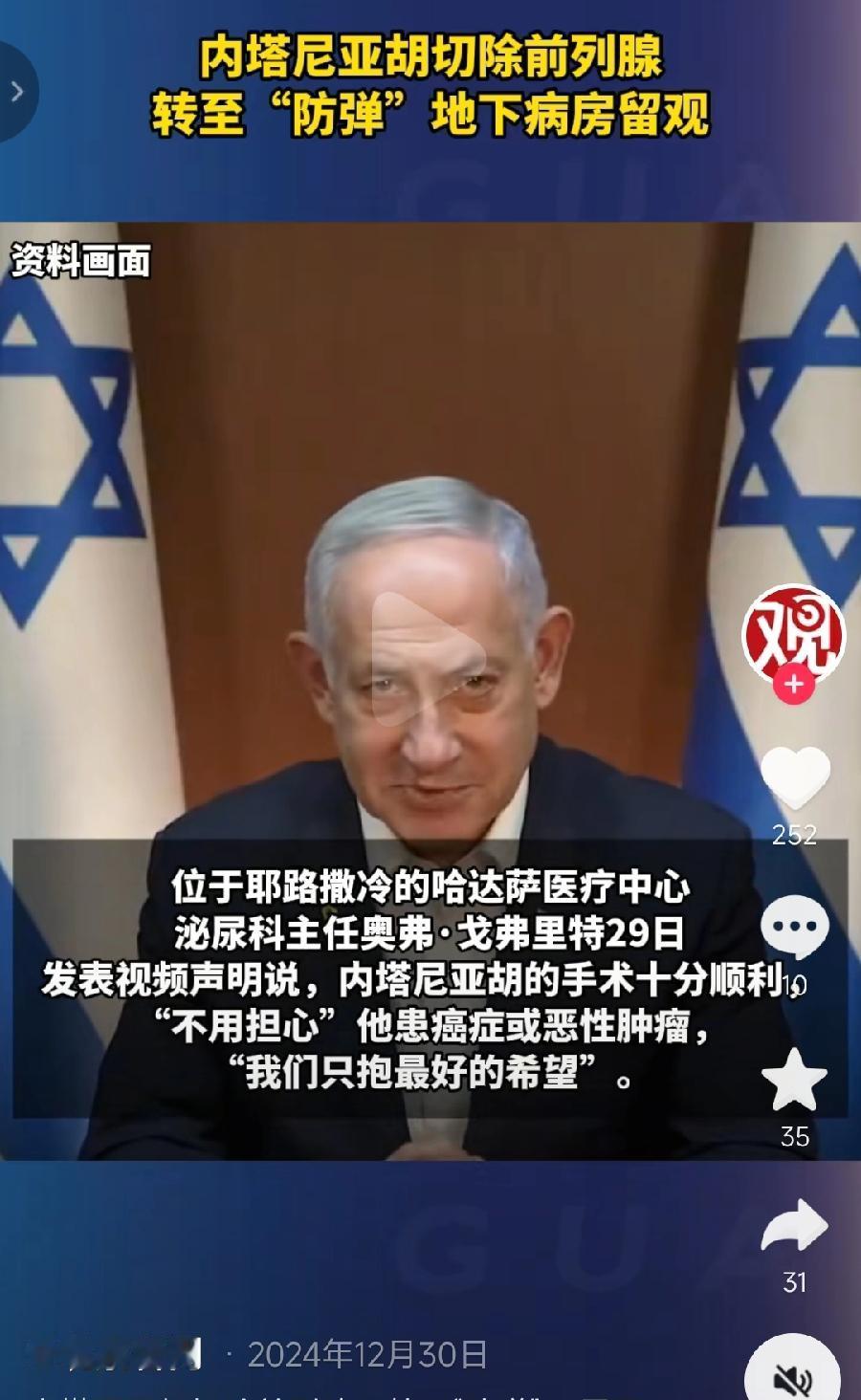 内塔尼亚胡,还是没逃掉患癌症的命,已经做了早期前列腺癌放疗,两年前前列腺增生,就做了切除前列腺手术了,医疗团队还说不用担心患癌,结果还是没跑掉!