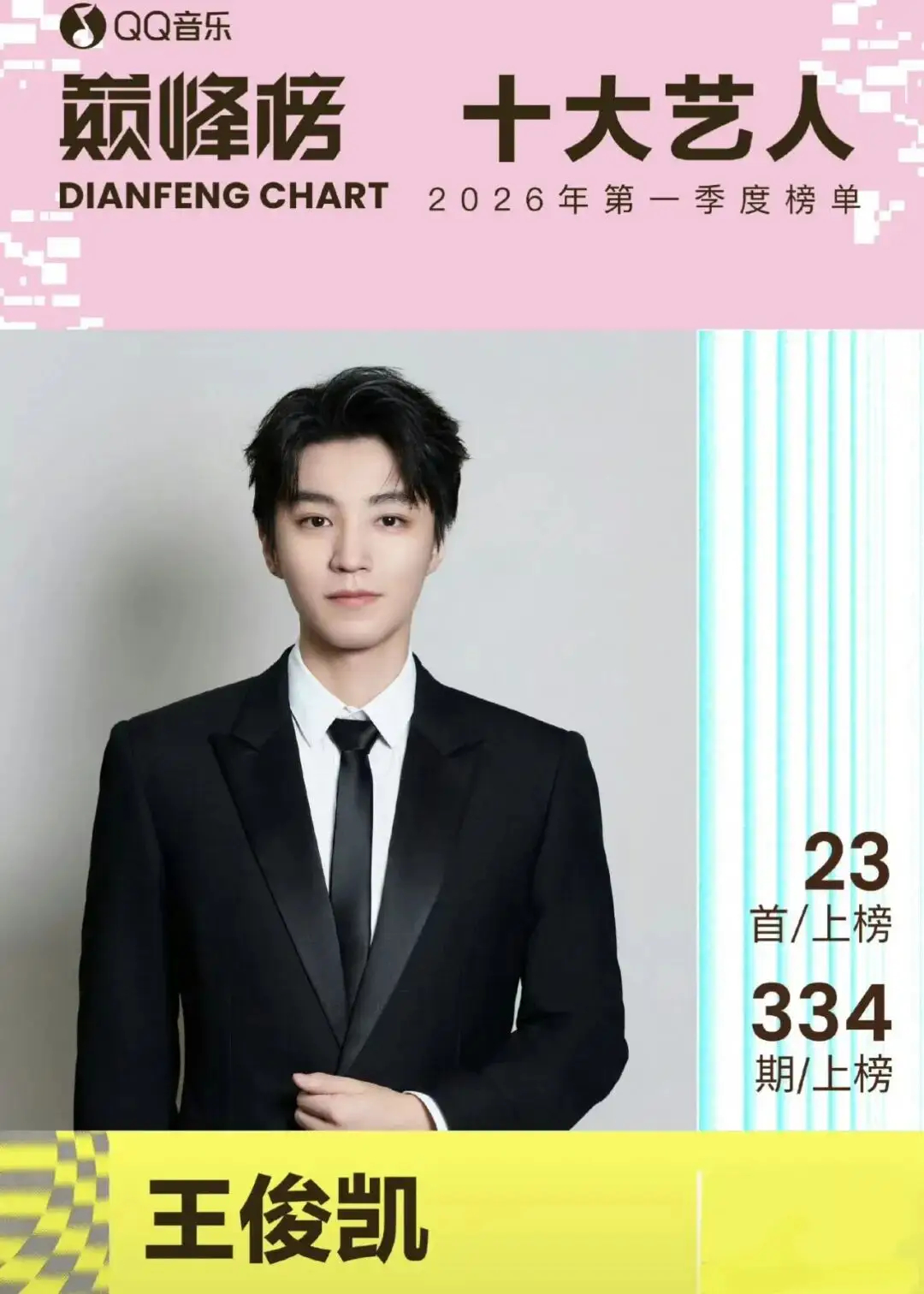 BTS、蔡徐坤、黄子弘凡、刘宇宁、檀健次、王俊凯、汪苏泷、薛之谦、周深、周杰伦(按艺人名字首字母排序)