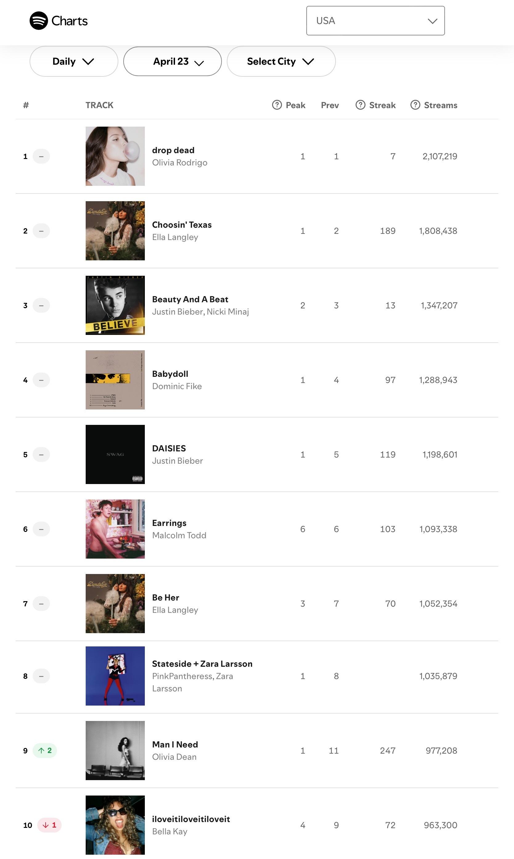 【流媒速览】Spotify 全球/美区歌曲日榜(2026.04.23):