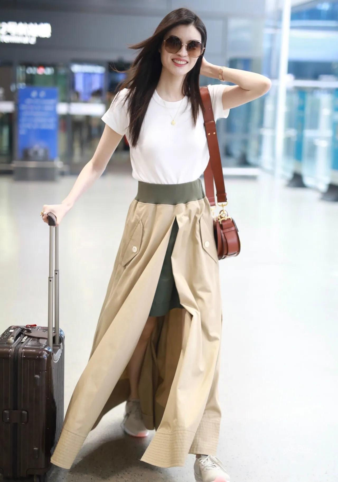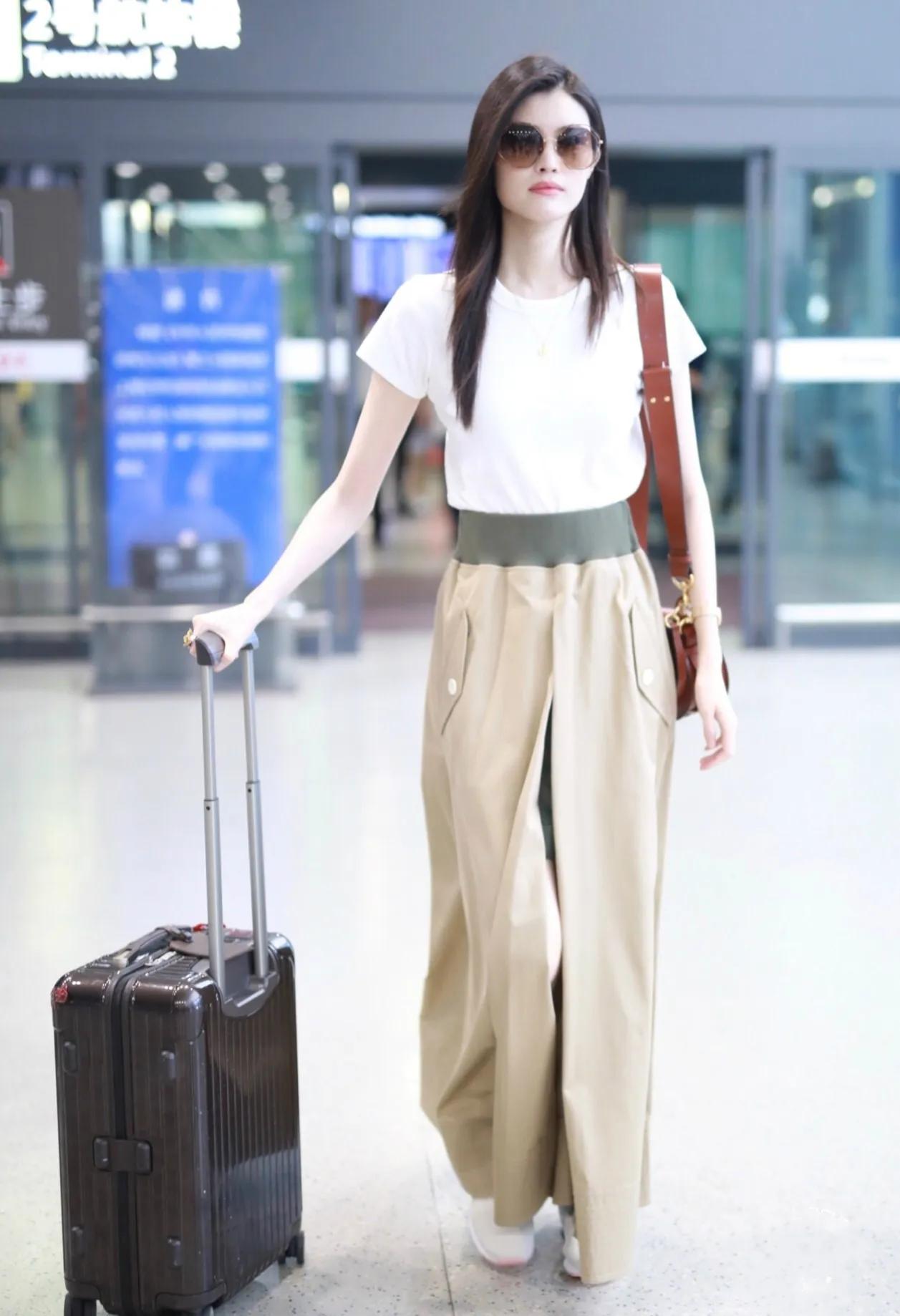 何穗这套机场穿搭直接把“超模氛围感”拉满!卡其色工装套装自带利落飒爽感,收