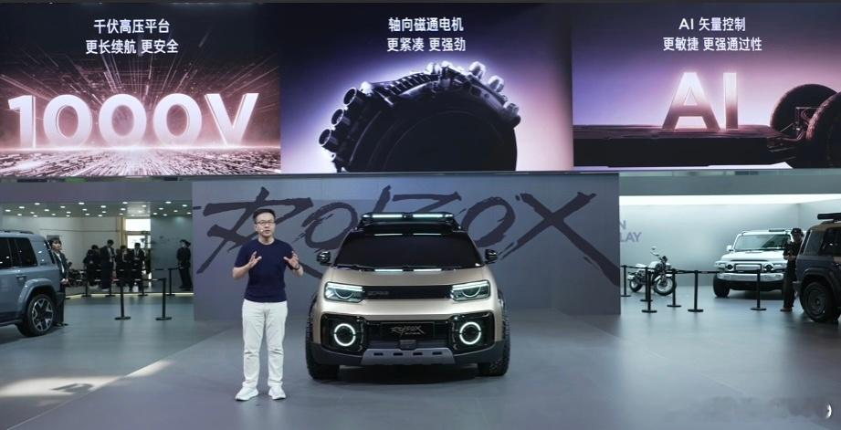 展台不止有未来概念,更有实打实的量产硬货。纯电方盒子V23带来“白武士”改装特别版,455马力、4.5秒破百,持续领跑细分市场;家庭新硬派V27增程版综合续航超1200km,配备MRC磁霸悬架与高算力智驾系统,右舵国际版也首次亮相,全球化布局全面提速。