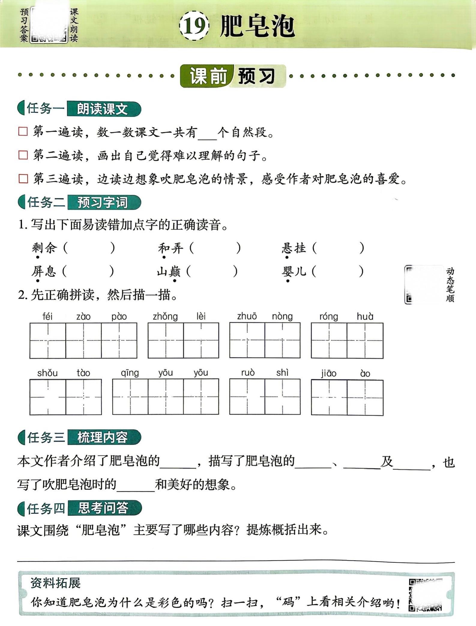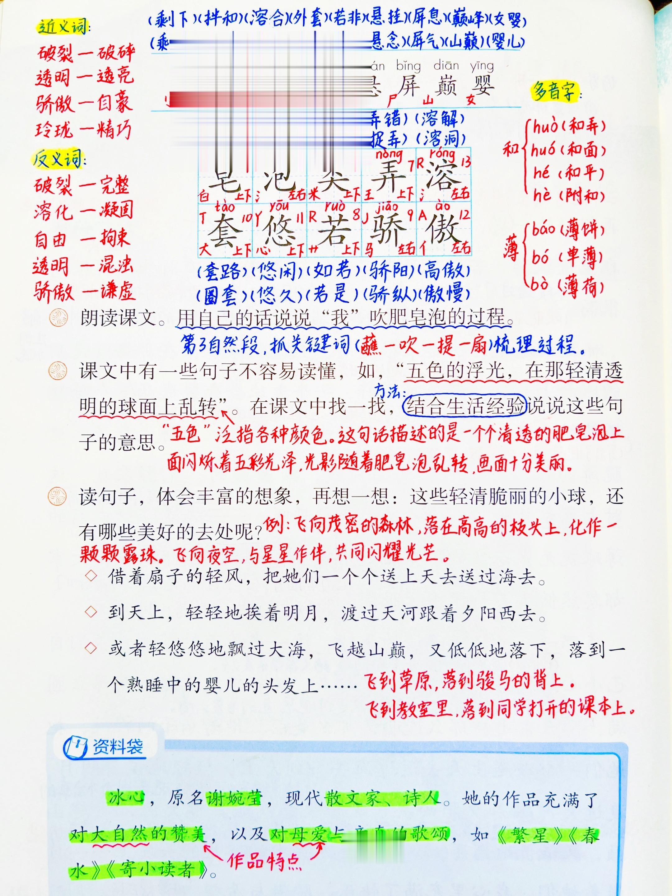 三年级下册语文《肥皂泡》笔记。 想象一下,肥皂泡被送上天会怎样?被送过...