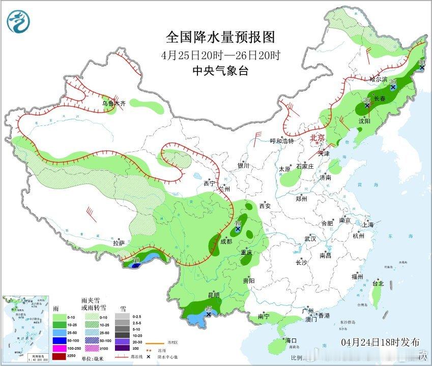 今晚到明天,低空切变线继续南压,海南岛南部和台湾岛南部,可能还有大雨或暴雨。江南、华南大部地区,天空会放晴。另外继续受到冷涡影响,黑龙江西北部可能有大雪-暴雪。未来2天,黑龙江中东部、吉林中东部、辽宁多地,在冷涡南侧还会出现阵性降雨。26日西南地区的降雨随着暖湿气流增强,开始增多。