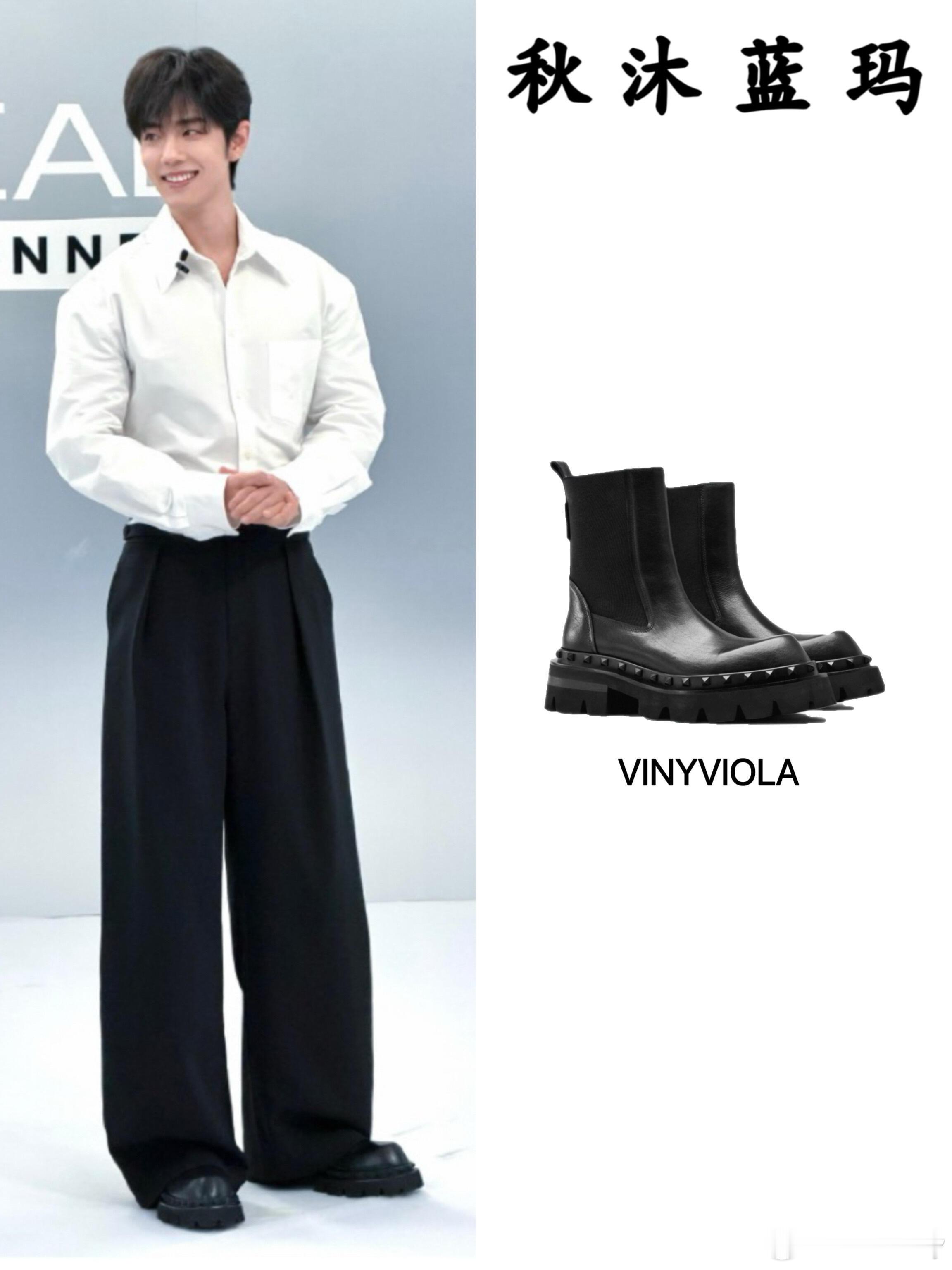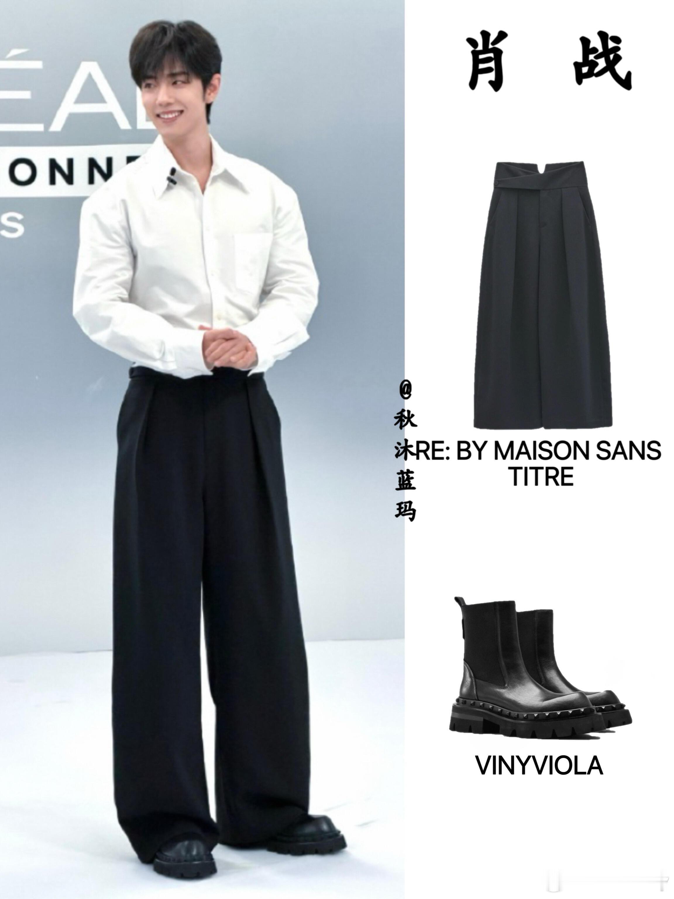 黑白雅痞|肖战的光影松弛感白衬衫与黑阔腿裤,是永不过时的经典答卷。肖战身着 RE: BY MAISON SANS TITRE 黑色交叉腰封阔腿裤,高腰线精准优化比例,垂坠感裤管自带气场。搭配 VINYVIOLA 铆钉切尔西靴,利落中注入不羁态度,打破黑白沉闷。领口自然敞开,不系顶扣的细节,藏着温柔的少年气。光影落于肩头,雅痞与青涩在此刻平衡,一笑便点亮整个镜头。