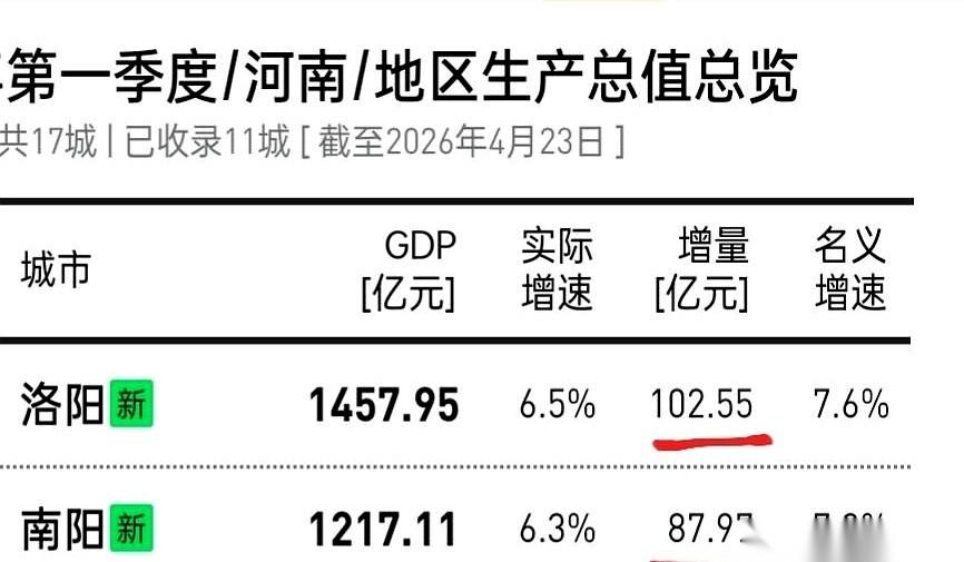 河南今年一季度的账本摊开了,洛阳和南阳这两座副中心城市,这次是真的跑疯了。
