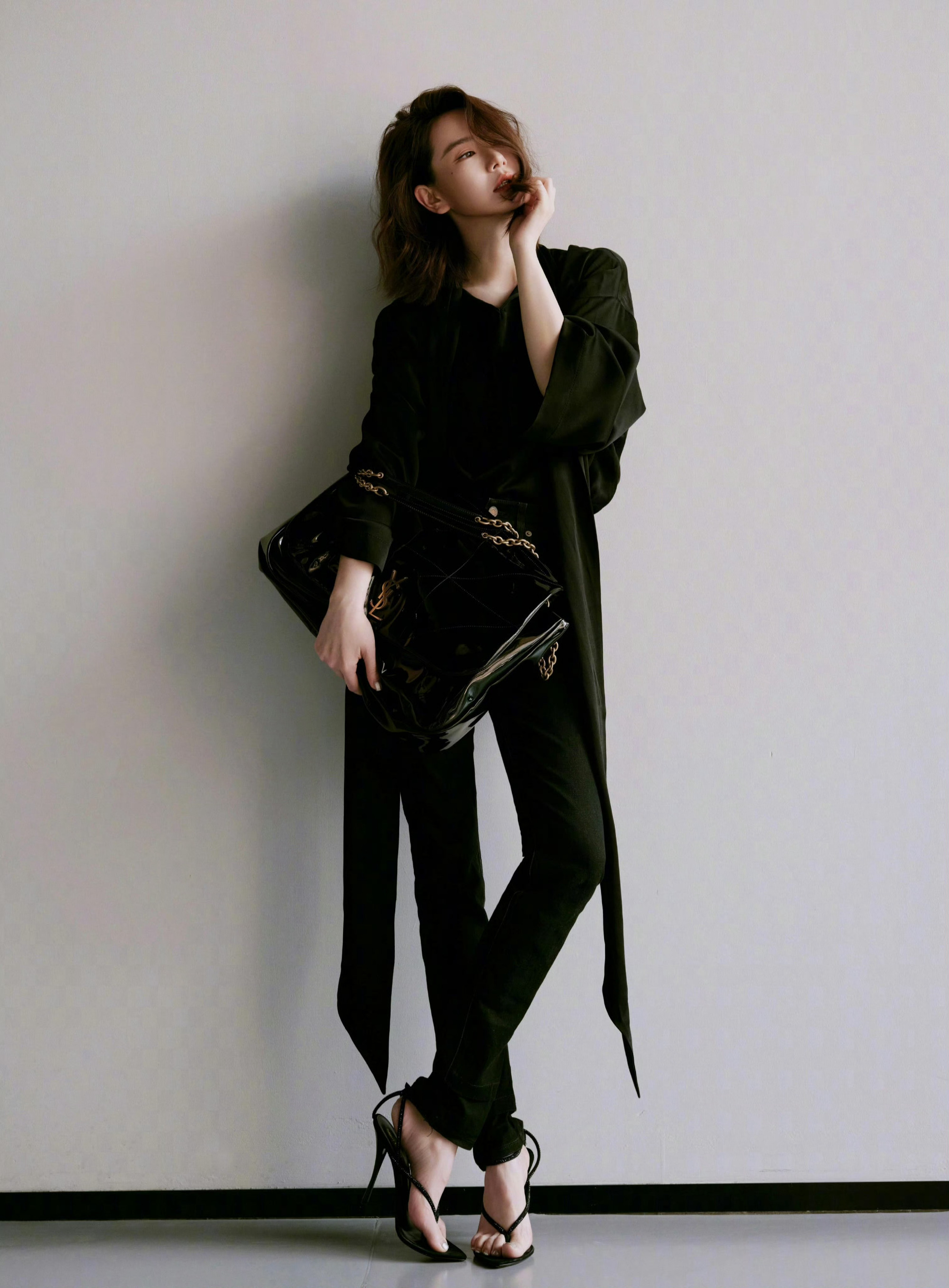 戚薇,黑衣大长腿,冷酷迷人。戚薇
