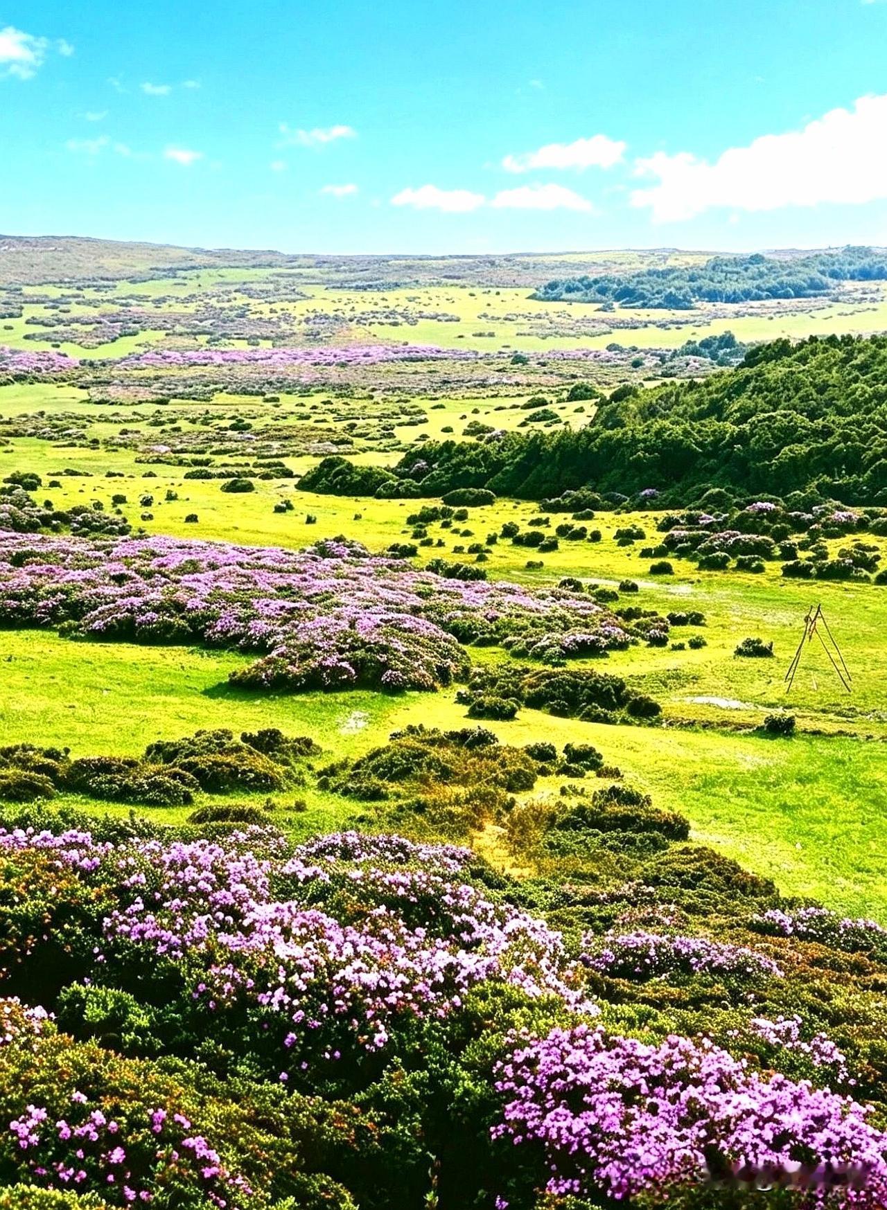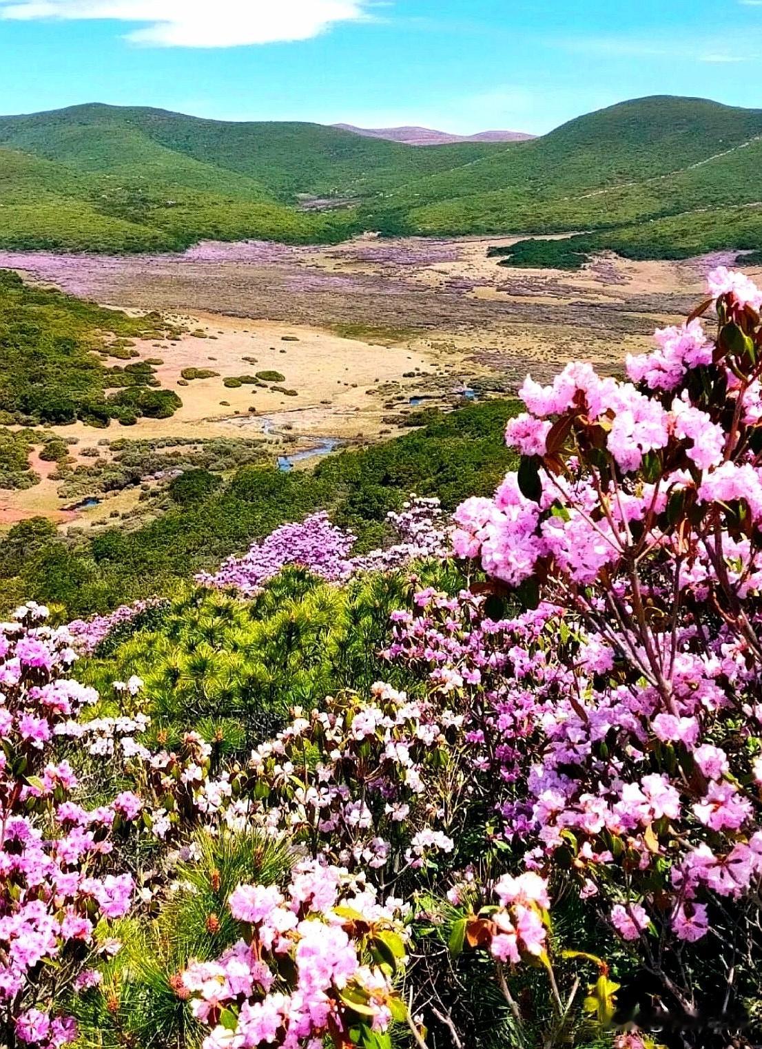 这里就是四川凉山州昭觉县谷客德七里坝原始索玛花海,这里是凉山阿勒泰,这里不仅有杜鹃,还有蓝天、白云、湖泊、远山、还有草原,更是与你有缘……