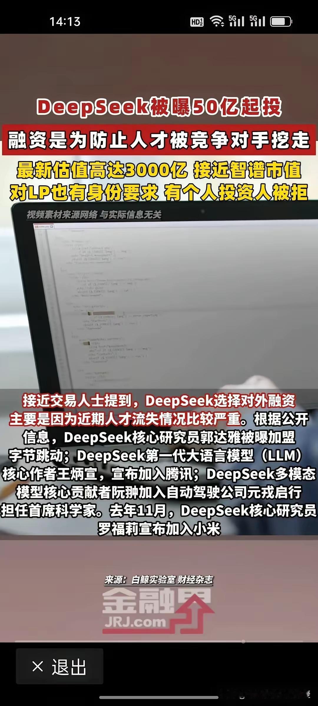 想想看,普通公司融资是“求钱”,DeepSeek是“挑人”。就像组队打游戏,别人还在凑人数,他直接放话“装备不够顶尖的别来”,看似苛刻,实则是为了走得更远。毕竟AI这场仗,不是靠烧钱就能赢,得有能持续输出的技术团队,还得有能把技术落地的场景资源,缺一样都走不远。