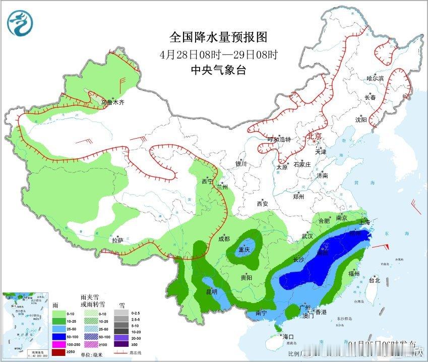 明天西南地区降雨增多,26日晚-29日,南方地区还会自西向东出现一轮大范围的强降雨和强对流天气过程。27-28日在冷暖空气交错之下,还会形成低涡切变线,导致江南华南多地有大雨-暴雨。低涡附近可能出现大暴雨。由于低涡具体位置,移动路径还有变数,强降雨落区,还会不断修正。