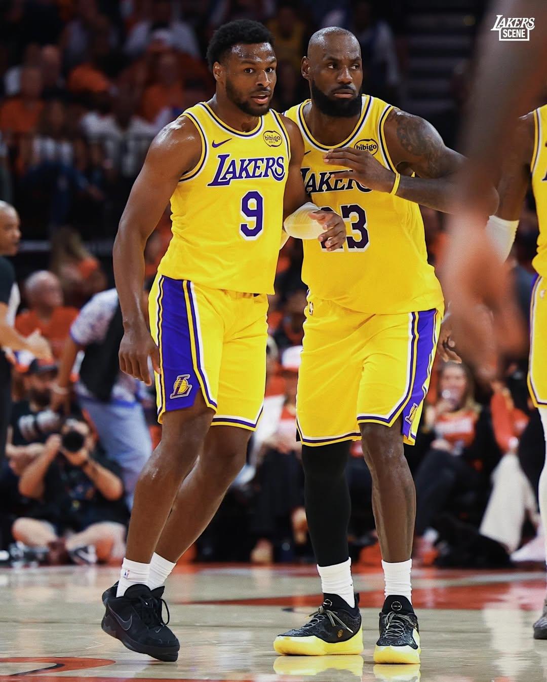 比赛中,勒布朗-詹姆斯给布朗尼-詹姆斯送上助攻,两人完成空接上篮。