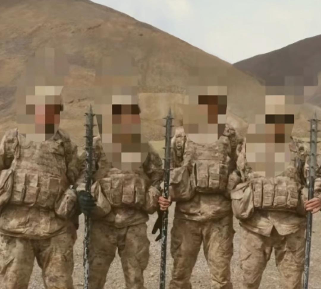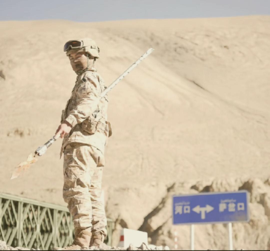 这是驻守中印边境高原地带的解放军边防官兵,画面中的官兵身着我军21式荒漠迷彩作训服,手里拿的是专门为边境近距离对峙设计的制式防暴冷兵器,带刺狼牙棒、格斗防暴棍,也就是俗称的“打印神器”。