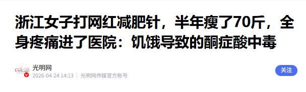 相关医护人员多次提醒,这类网红减肥药需在专业医生指导下使用,自行注射、随意加量,极易引发严重健康风险,甚至危及生命,切勿盲目跟风。