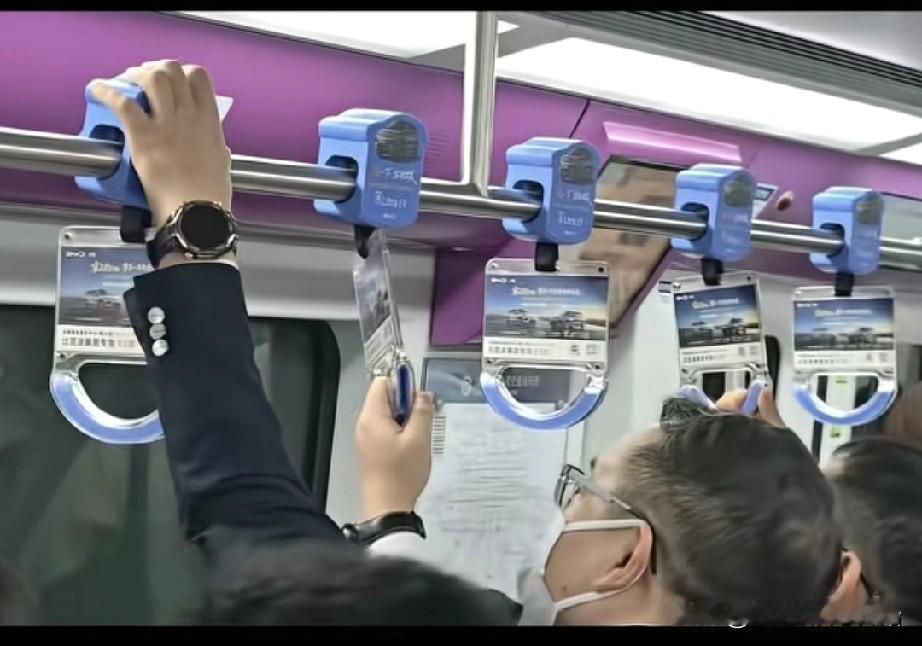 去去北京车展现场时,王传福带着妻子李柯选择坐公交和地铁出行,没有座位时,跟其他乘客一样拿着把手站立。