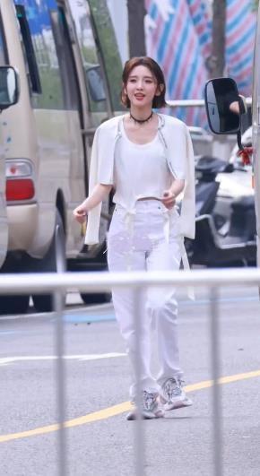 最近唐艺昕在录制浪姐的时候搭配了一身白色的衣服,看上去像个迷人的美少女。