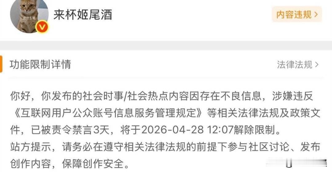 目前的大概情况是来杯姬尾酒每隔半小时通过发博向网友们报平安。但是很快当事人的某博就已经被禁言。