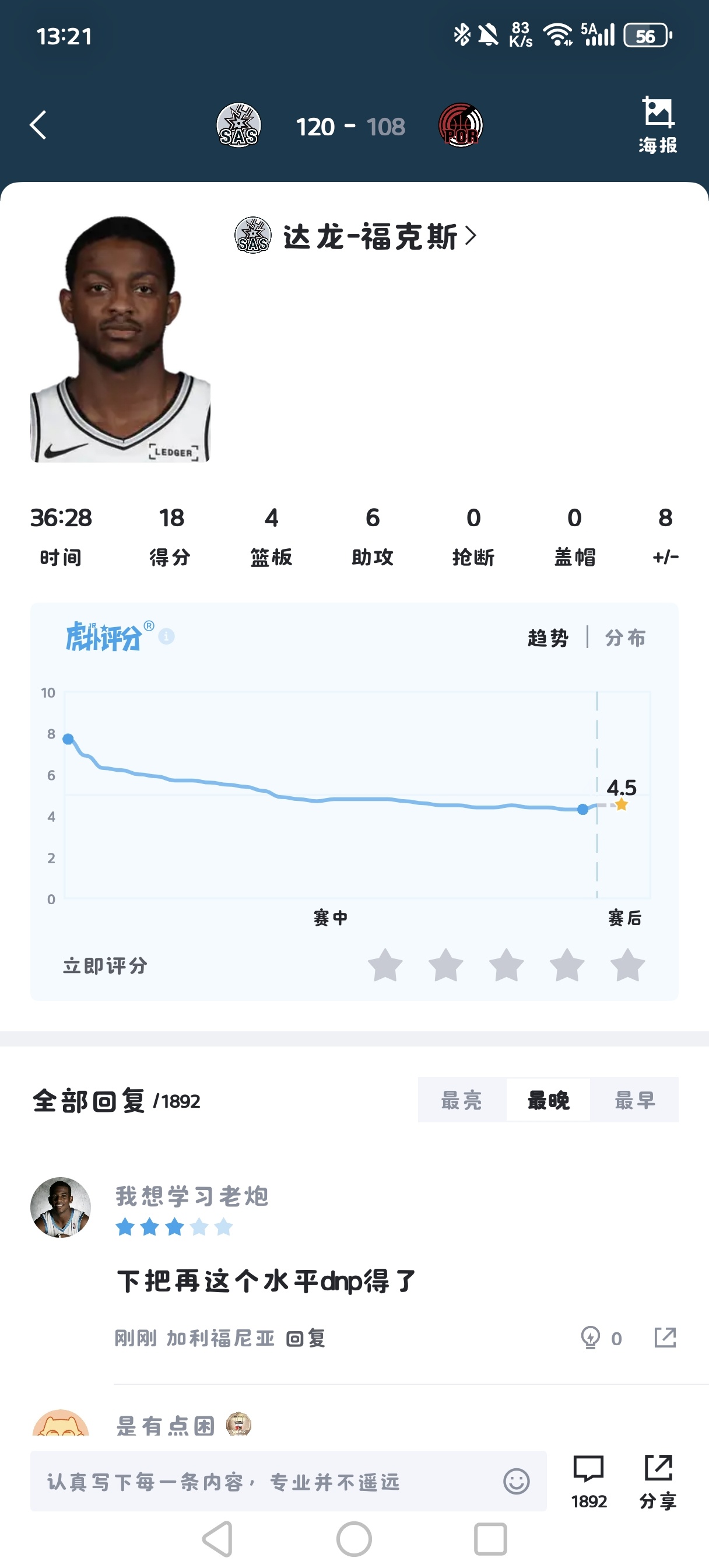 奔腾年代 2 2026-04-26 00:36 要知道,防福克斯的是常年进入赛季防守阵容的霍乐迪!别真当开拓者没有针对性防守。就算福克斯数据一般,消耗霍乐迪,使前三节大放异彩的他在第四节无所作为也是一件功劳。另外尚帕尼看起来好像也没什么贡献,但他整场缠斗的都是阿夫迪亚。看球不能只看数据统计表,有些默默的贡献是数据表看不到的。