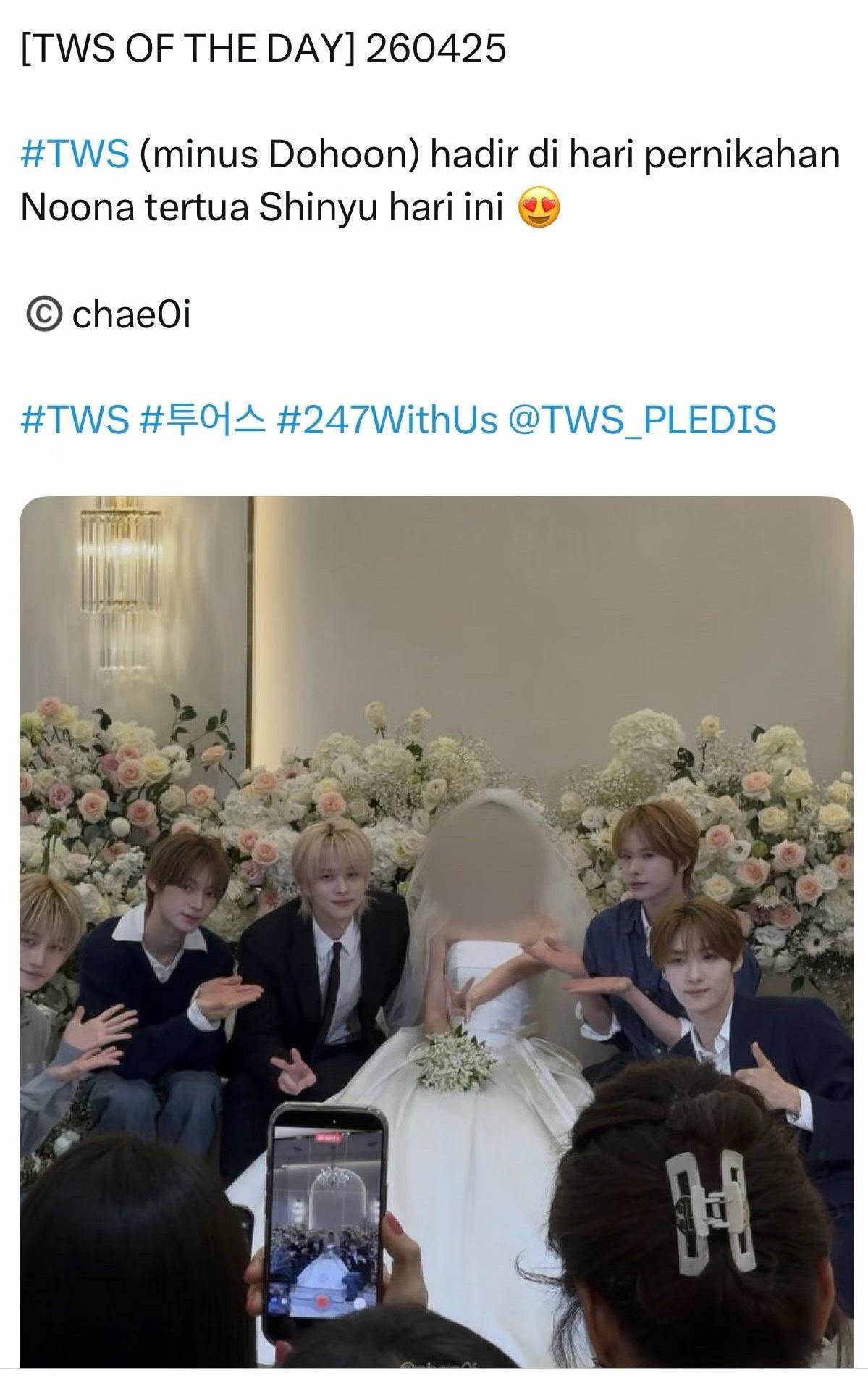 天呐tws来参加申惟姐姐的婚礼了,申惟还在姐姐婚礼上唱了祝歌。tws参加申惟姐姐