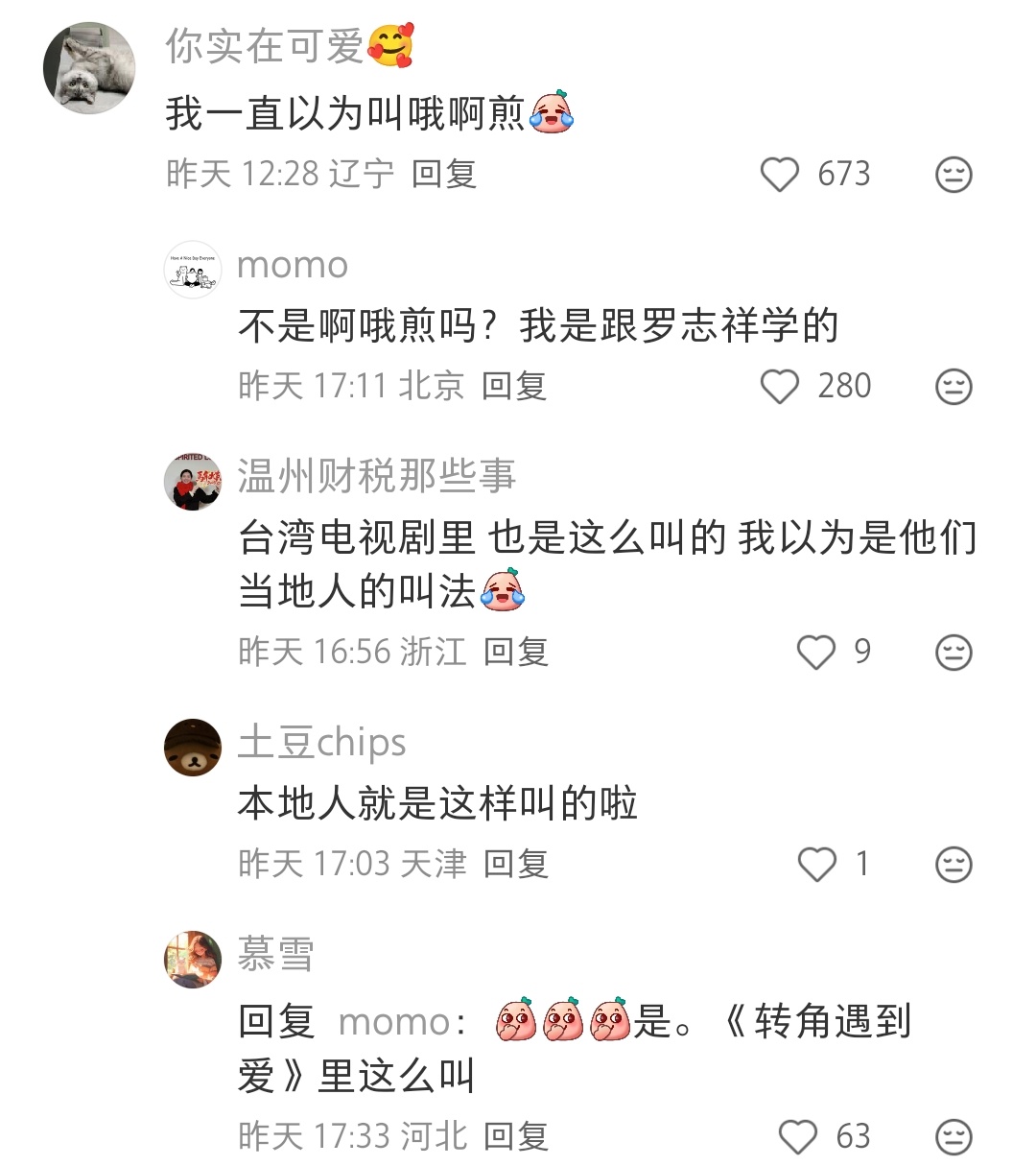 哈哈哈看转角遇到爱跟着学的,我一直喊“哦啊煎”