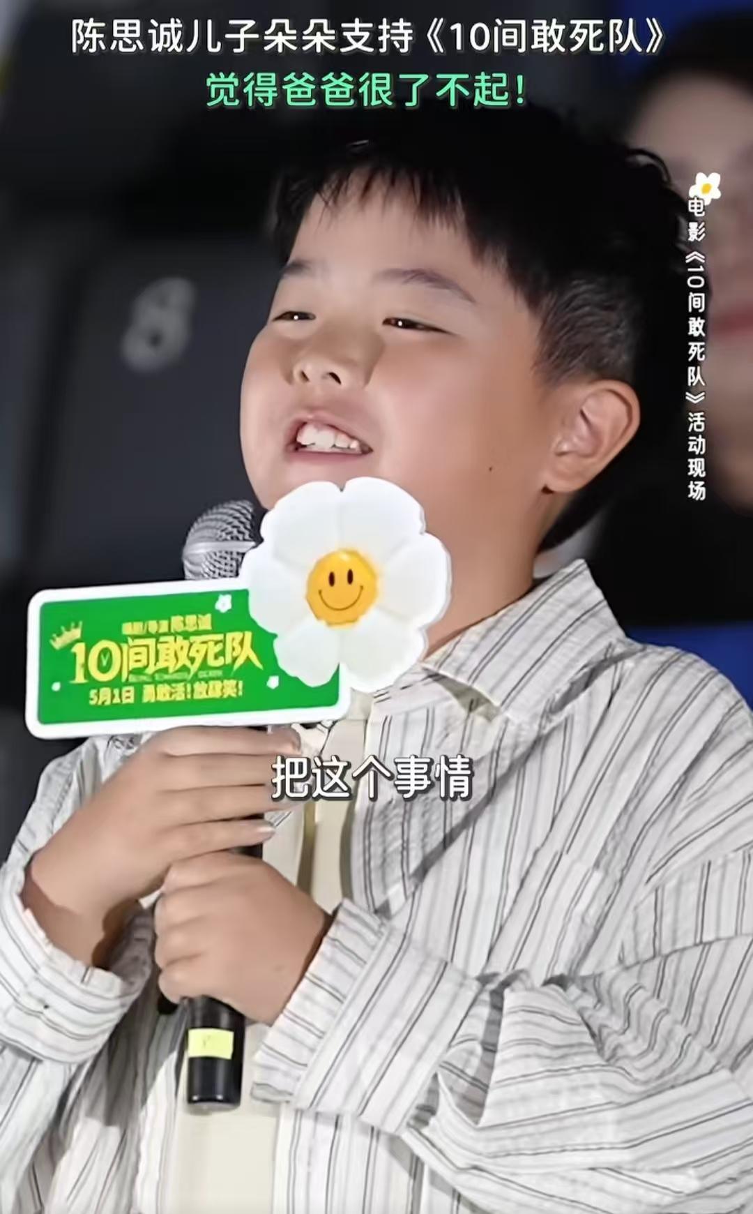 这儿子长相气质真是随爸了,才10岁的年纪,就对电影有自己的理解,真是很不错了。这也得益于陈思成对儿子在这方面的培养吧。已经不止一次,朵朵来到了爸爸电影的发布会上,并且每次都发言了。