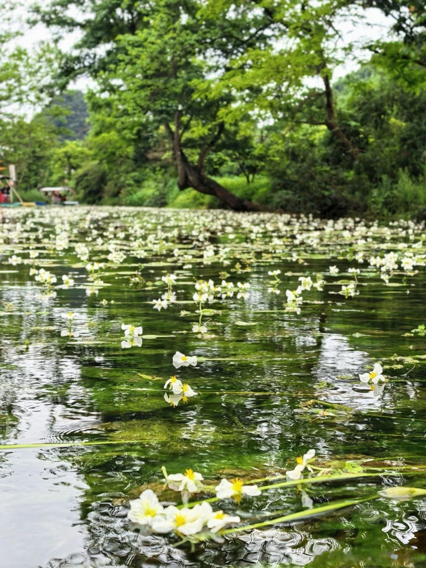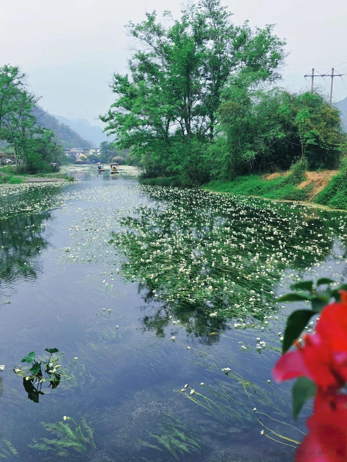 一个小村庄里,藏着一条会开花的河🌿桂林永福百寿镇乌石屯,少有人知的小众秘境。4到6月海菜花铺满河面,像流动的油画。只能自驾前往,安静独享这份春日浪漫。