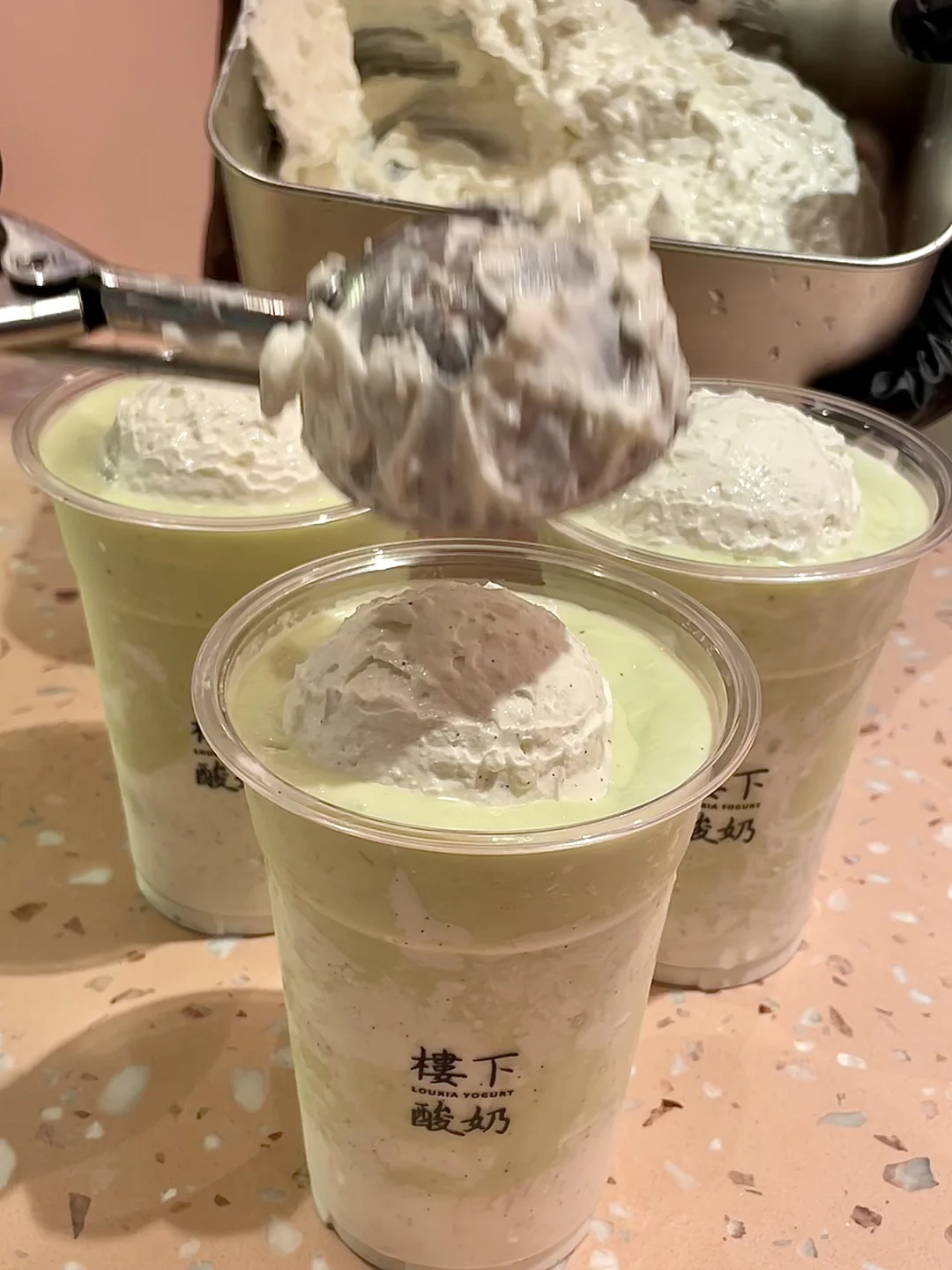 牛油果🥑这杯给到顶夯,上面duang大一颗酸奶大米球,底部的牛油果沙冰入口即化,真滴好好喝😭😭