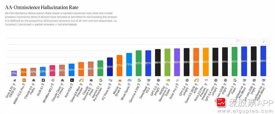 【海外评测DeepSeek-V4:智能体任务排名开源第一 幻觉率上升、Token消耗大】4月24日, DeepSeek-V4预览版正式发布并同步开源,号称在Agent能力、世界知识与推理性能三大维度达到国内及开源领域领先水平。DeepSeek-V4分为Pro与Flash两个版本,均支持百万(1M)token超长上下文。两个版本均大幅降低了对计算和显存的需求,将每个标记的推理FLOP降低 73%,并将KV缓存内存占用降低90%。 4月24日,全球最大AI模型应用程序编程接口聚合平台OpenRouter的数据显示,V4-Flash的调用量达270亿Token,V4-Pro为47.9亿Token,但没有登上排行榜。DeepSeek-V4发布后,主流评测平台进行了能力测试和排名。评测机构对DeepSeek-V4进行了推理能力专项测评。在智能体任务表现方面,V4-Pro在真实场景智能体工作任务中,性能位居所有开源权重模型首位,得分1554。 DeepSeek-V4知识储备升级,但幻觉发生率上升。相较于V3.2的幻觉率(82%),V4两款模型的幻觉问题突出:V4-Pro幻觉率为94%、V4-Flash幻觉率为96%,意味着模型在未知问题场景下,几乎都会强行生成答案。完成标准测评流程,V4-Pro输出Token消耗量达1.9亿,属于本次测评中Token消耗最高的模型之一;V4-Flash消耗进一步攀升至2.4亿Token。即便定价偏低,高额的Token消耗仍是V4-Pro综合使用成本高于其他开源模型的核心原因。(每经)