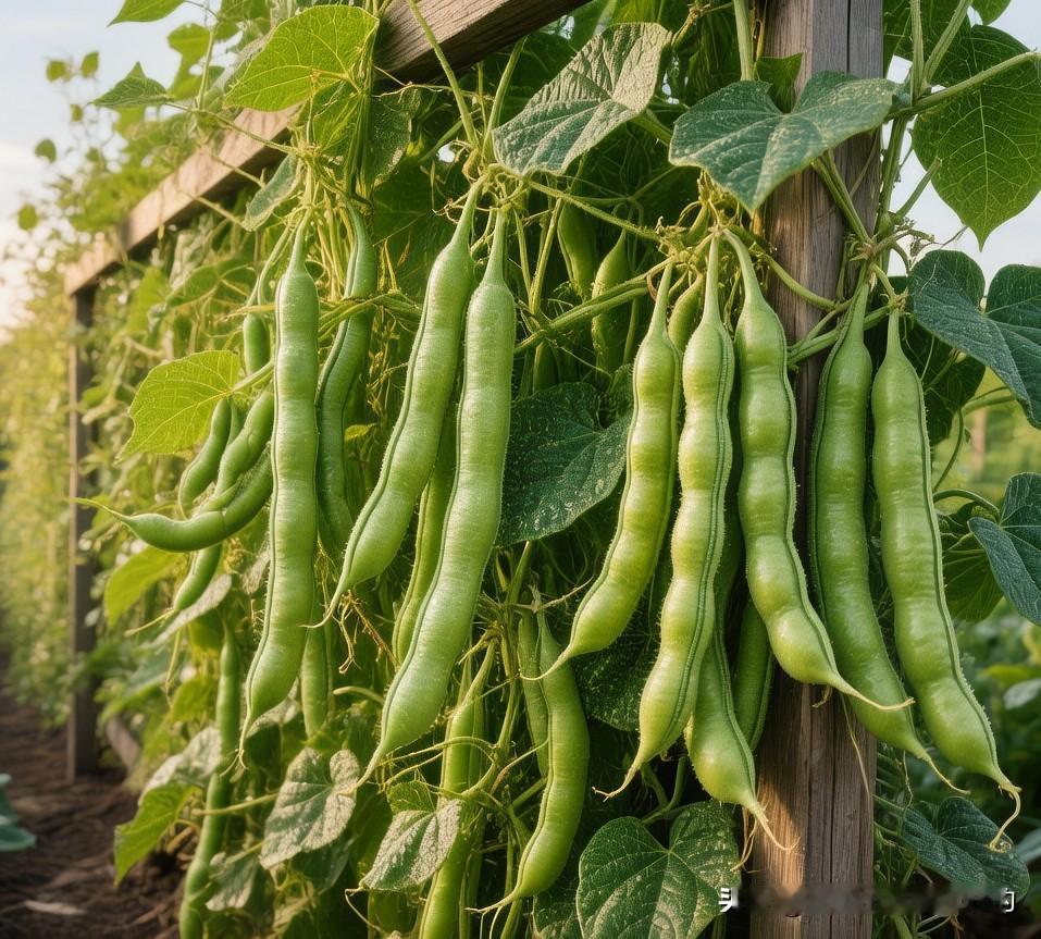 结得摘不败的豇豆,挂满枝头吃不完;