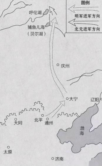 洪武元年,元顺帝北逃漠北,史称北元,北元保有完整行政体系与骑兵力量,盘踞漠北与明朝对峙,成为明初最大边患,朱元璋多次北征,洪武五年岭北之战受挫后,调整策略,转为近塞设卫、逐步蚕食的防御体系,洪武二十年,明军收降辽东纳哈出,扫清东北障碍,次年命蓝玉率军十五万,深入漠北,直扑北元汗廷驻地捕鱼儿海。